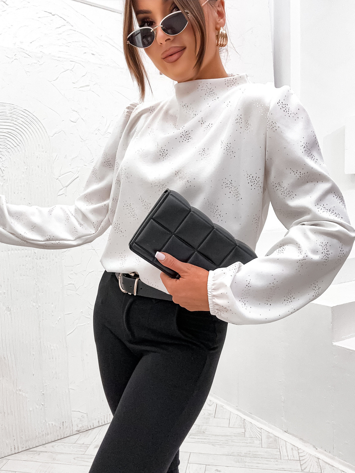 BLUZKA Z BUFIASTYMI RĘKAWAMI I BŁYSZCZĄCYM WZOREM- BIAŁA