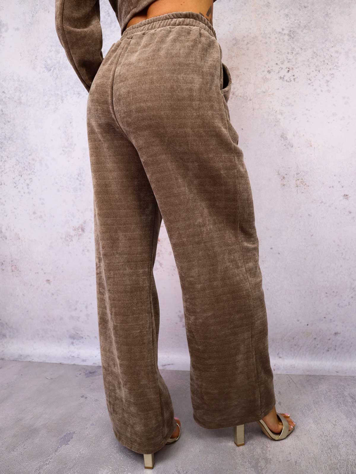 SZTRUKSOWY KOMPLET MARYNARKA+ SZEROKIE SPODNIE- CIEMNY BRĄZ