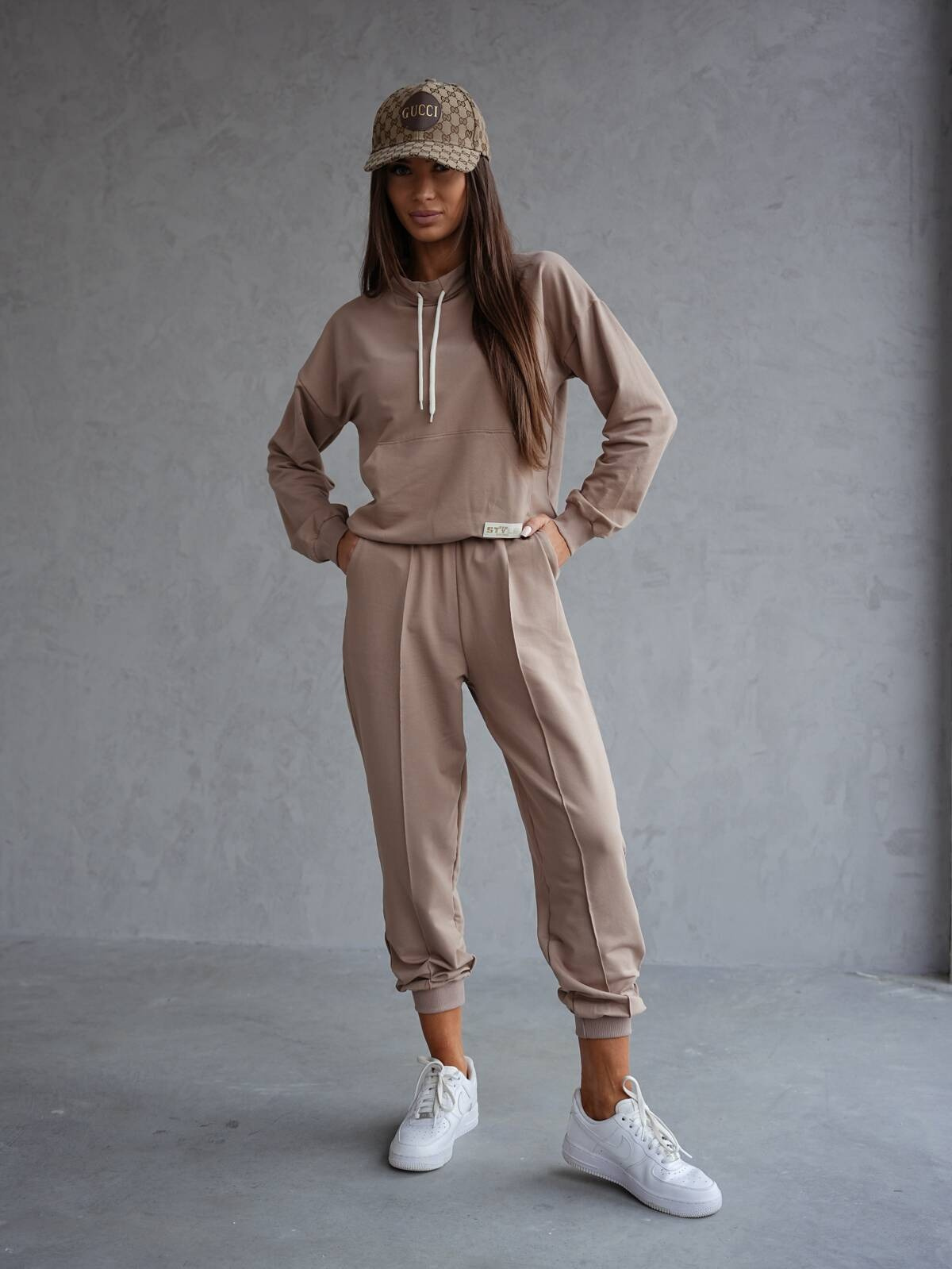 KOMPLET BAWEŁNIANY BLUZA Z SZNURKAMI+SPODNIE- BRĄZOWY