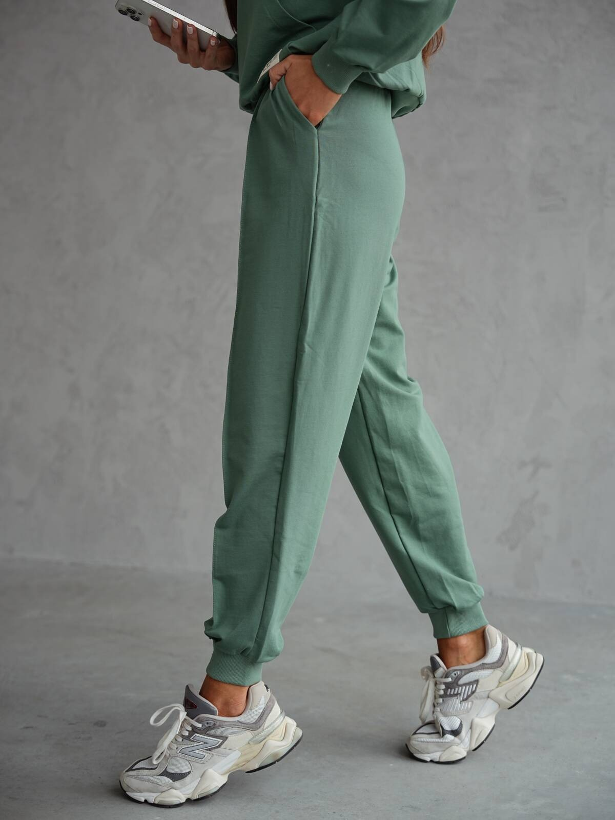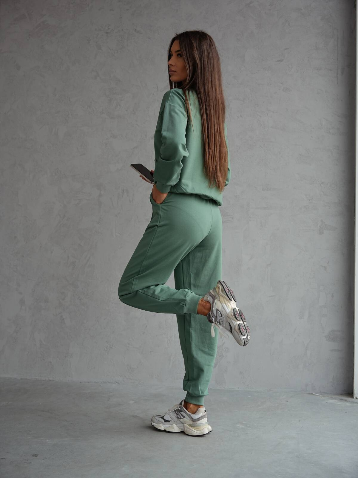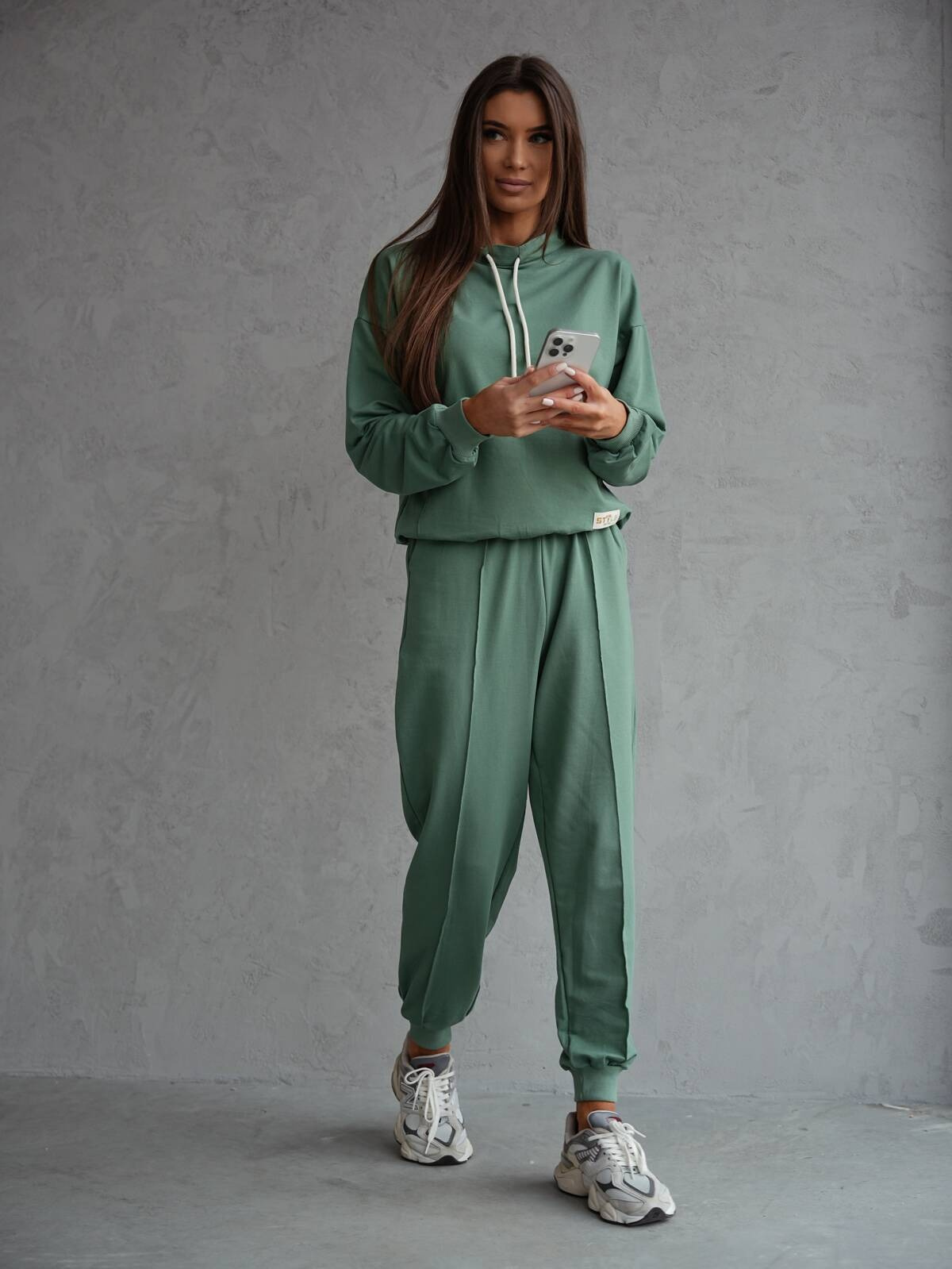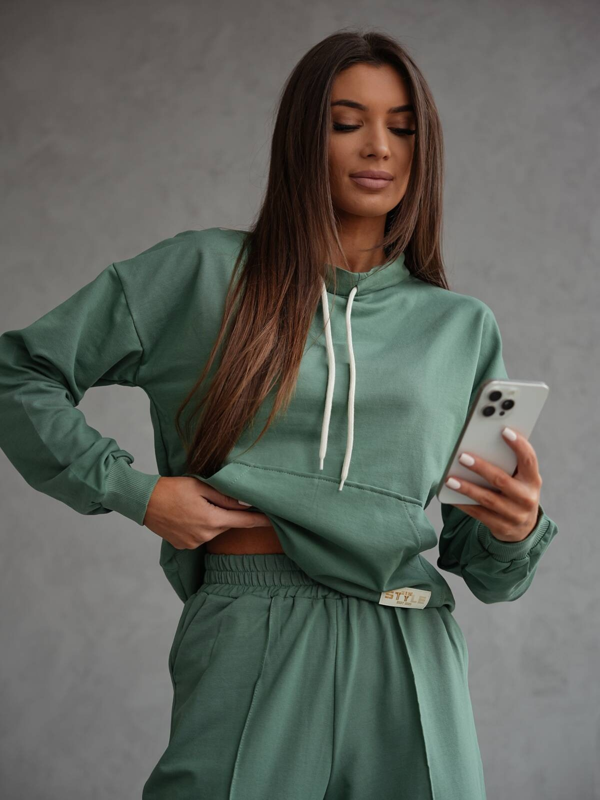 KOMPLET BAWEŁNIANY BLUZA Z SZNURKAMI+SPODNIE- ZIELONY