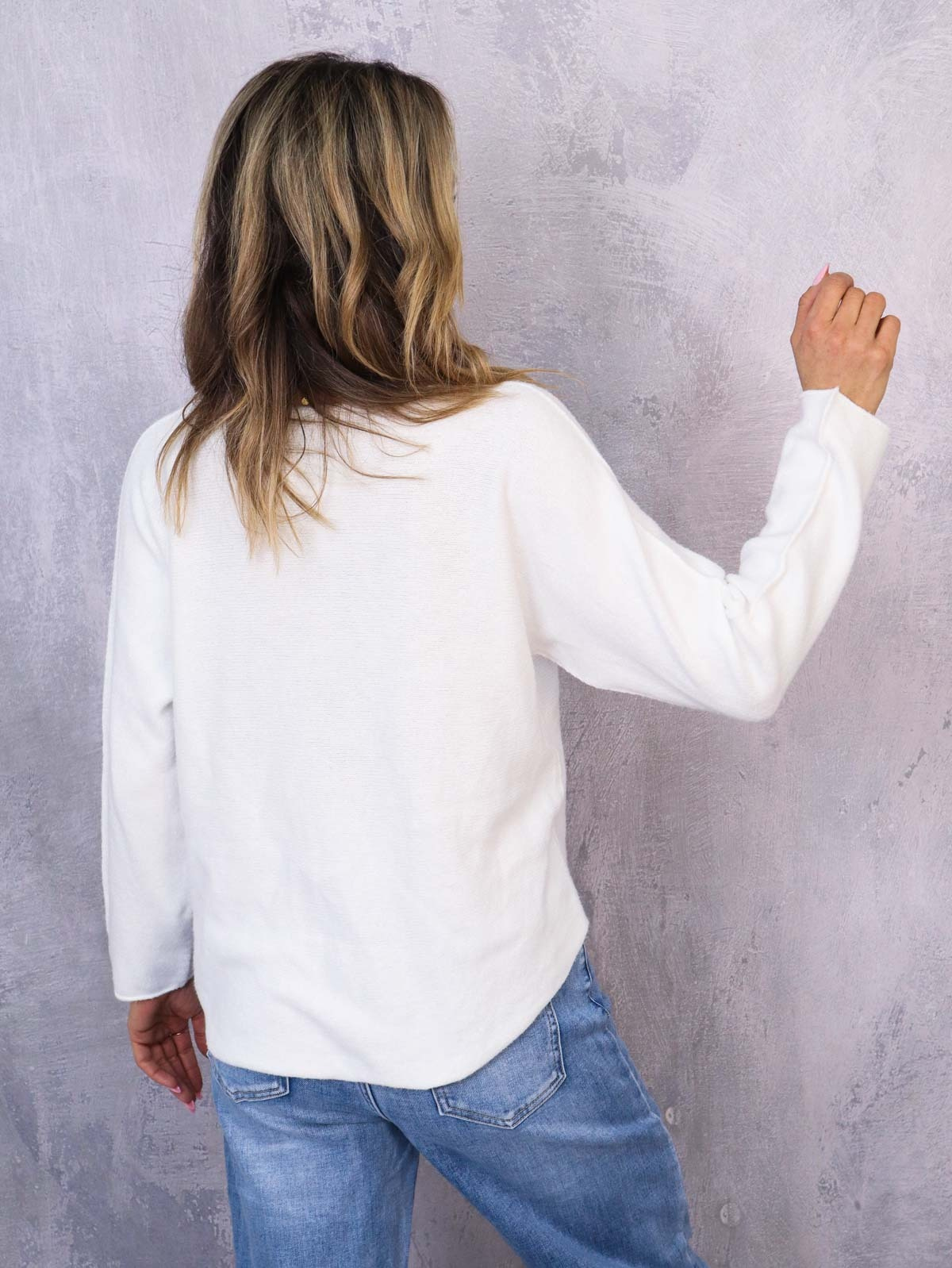 SWETER OVERSIZE Z DEKOLTEM W SEREK- BIAŁY
