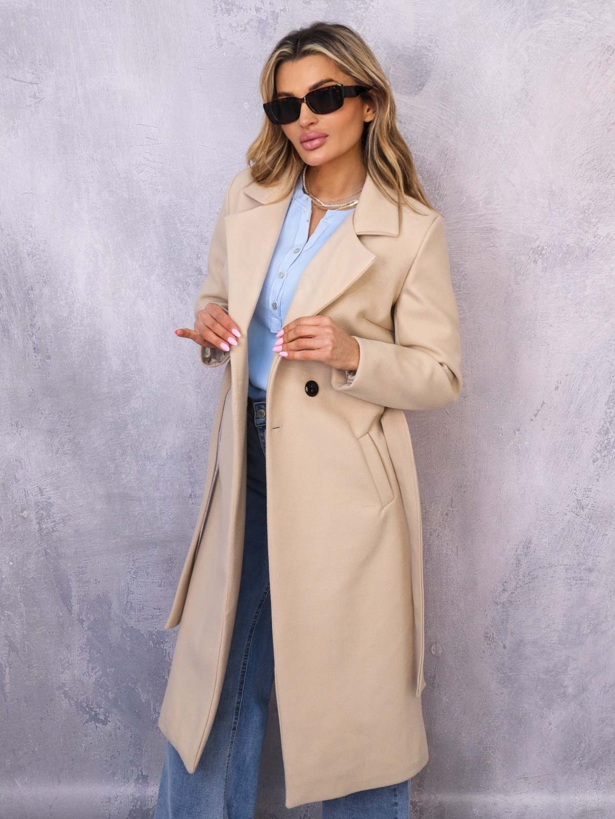 DŁUGI WIĄZANY PŁASZCZ- BEŻOWY