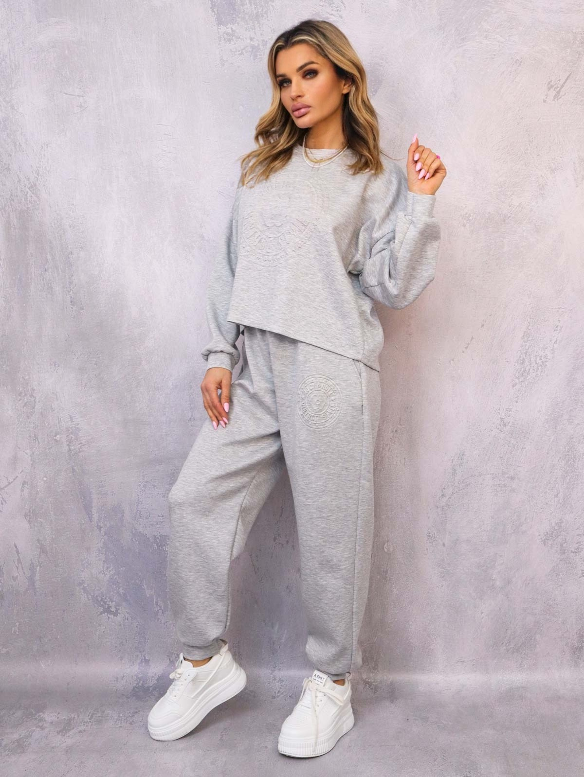 KOMPLET DRESOWY BLUZA Z WYTŁOCZONYM NADRUKIEM+ SPODNIE- SZARY