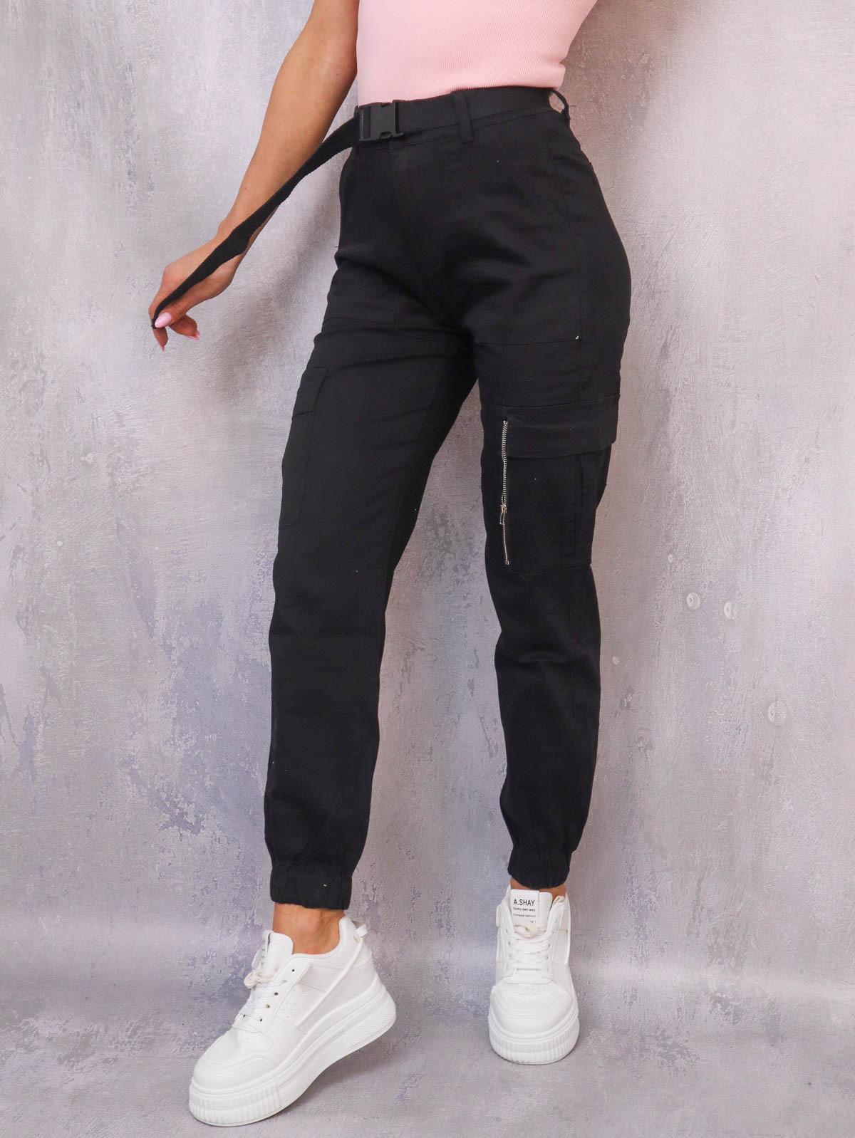 SPODNIE BOJÓWKI CARGO + PASEK- CZARNE