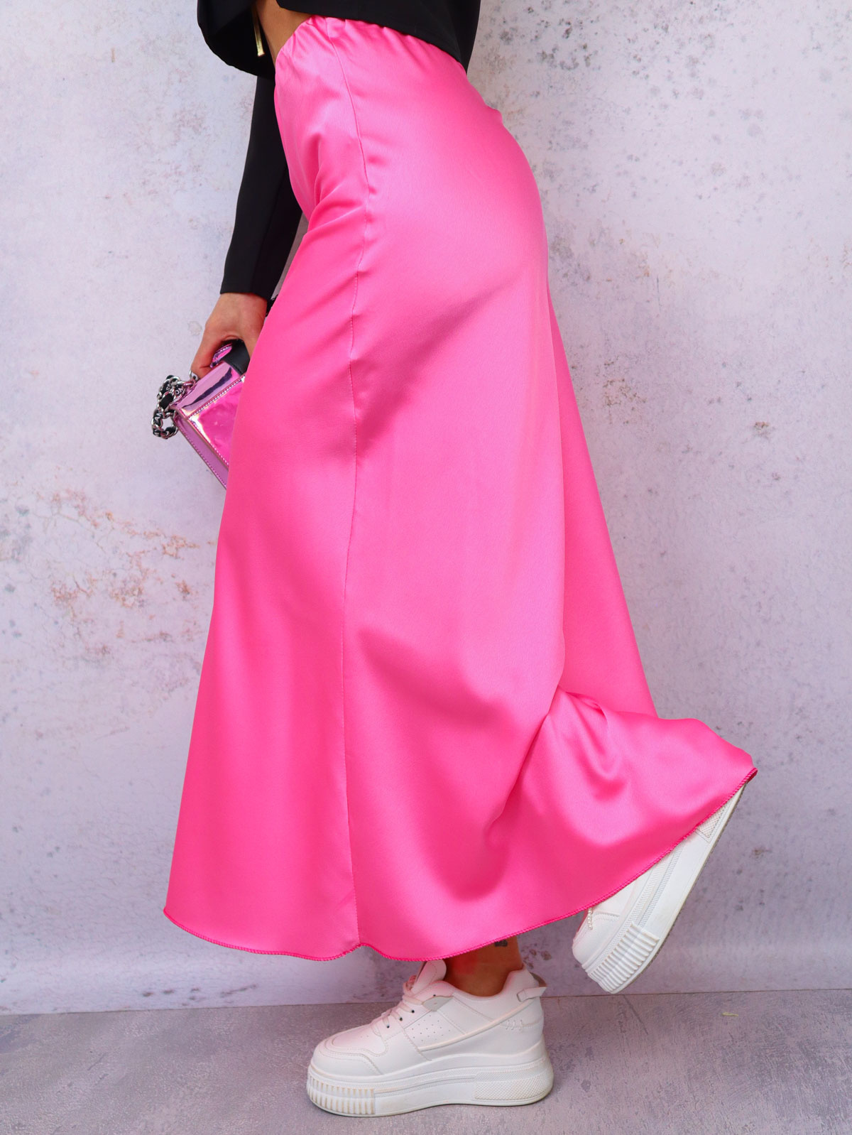 Spódnica o długości maxi, wykonana z satynowej tkaniny. W pasie wszyta gumka. Spódnica jest niezwykle zwiewna i prezentuje się znakomicie w każdej stylizacji