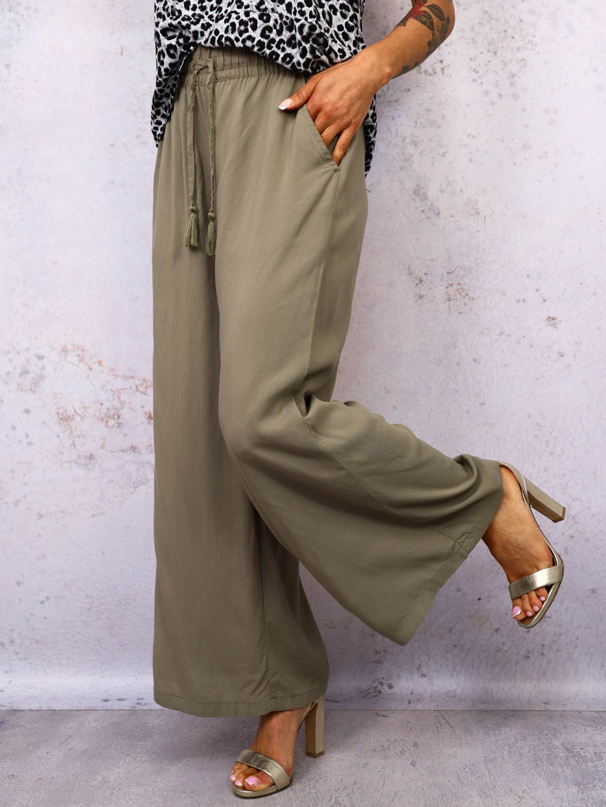SPODNIE MATERIAŁOWE Z SZEROKIMI NOGAWKAMI- ZIELONE