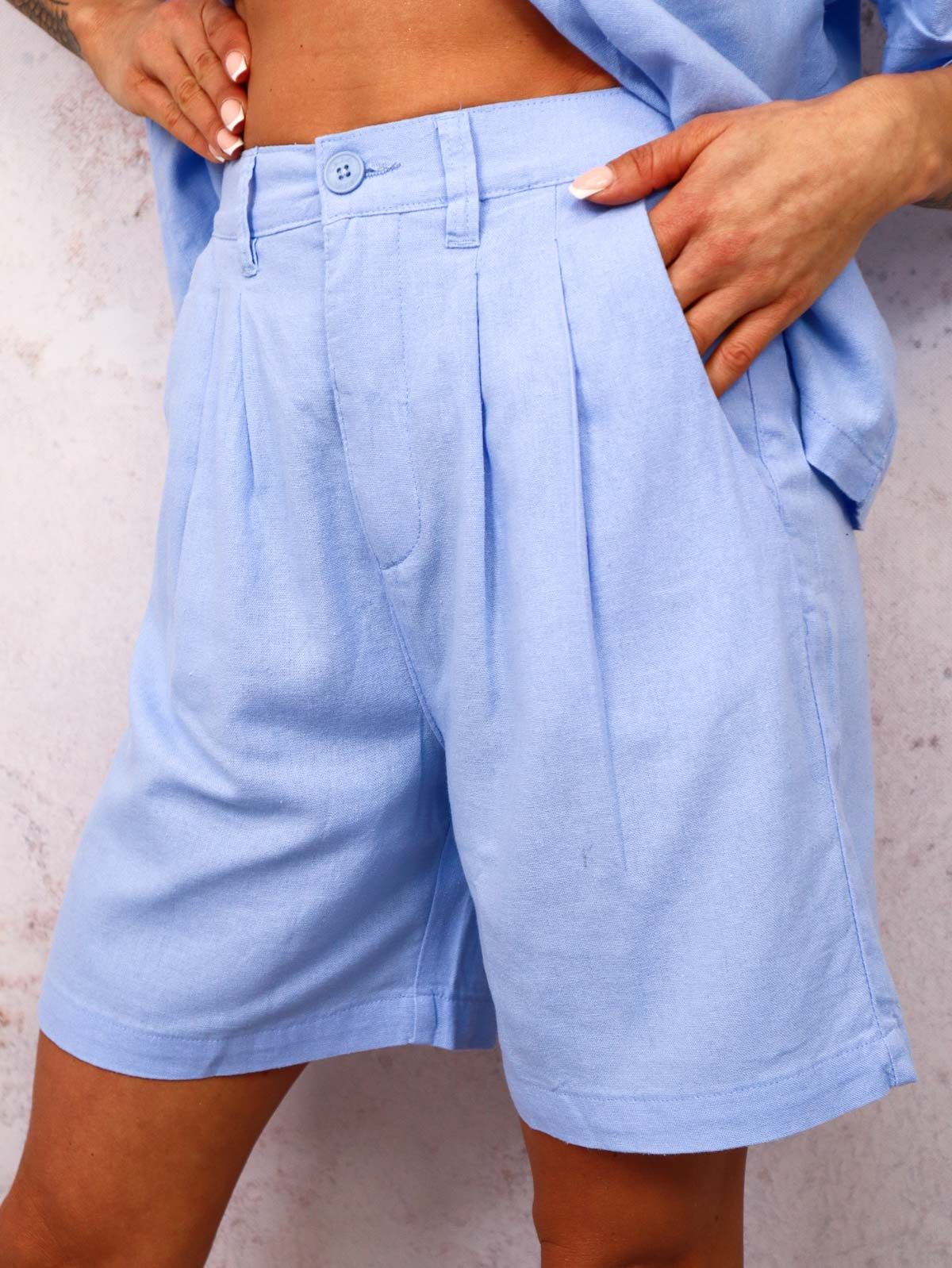 SZORTY MATERIAŁOWE BERMUDY- NIEBIESKIE