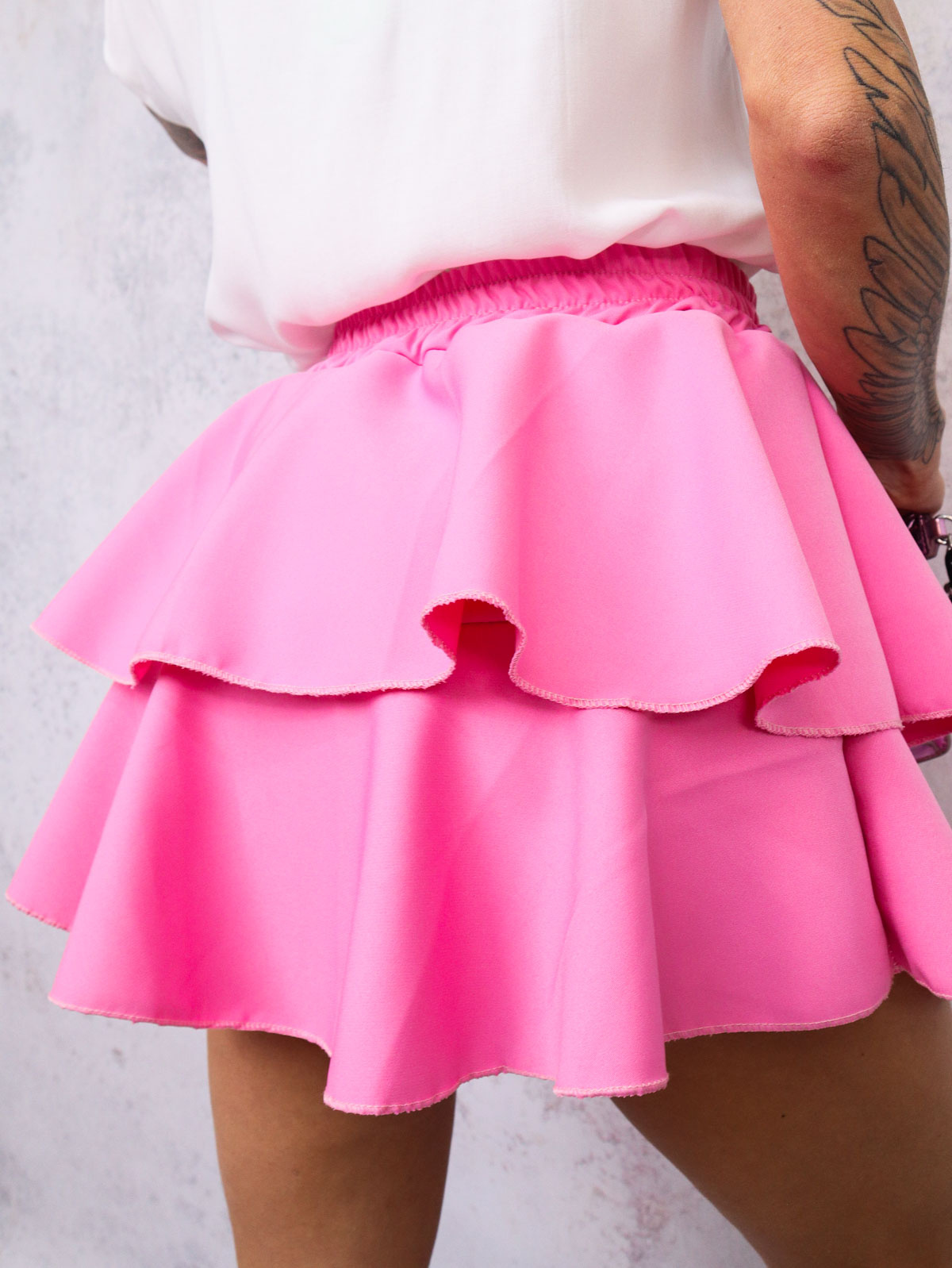 SPÓDNICO-SPODENKI Z FALBANĄ I OZDOBNĄ NASZYWKĄ- RÓŻOWE