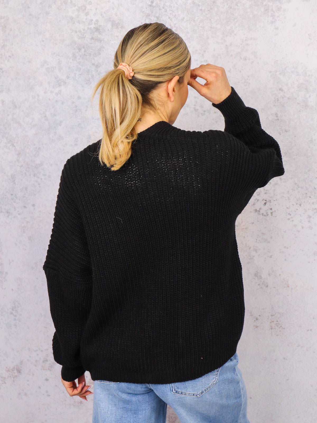 NARZUTA KARDIGAN DZIANINOWY Z KIESZENIAMI- CZARNY