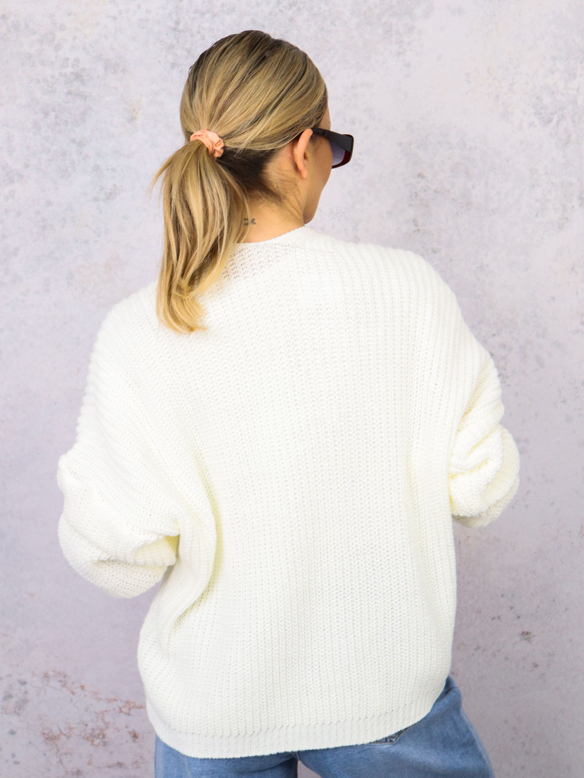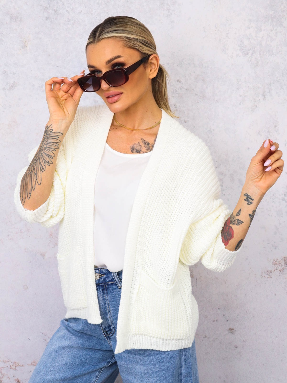 NARZUTA KARDIGAN DZIANINOWY Z KIESZENIAMI- BIAŁY