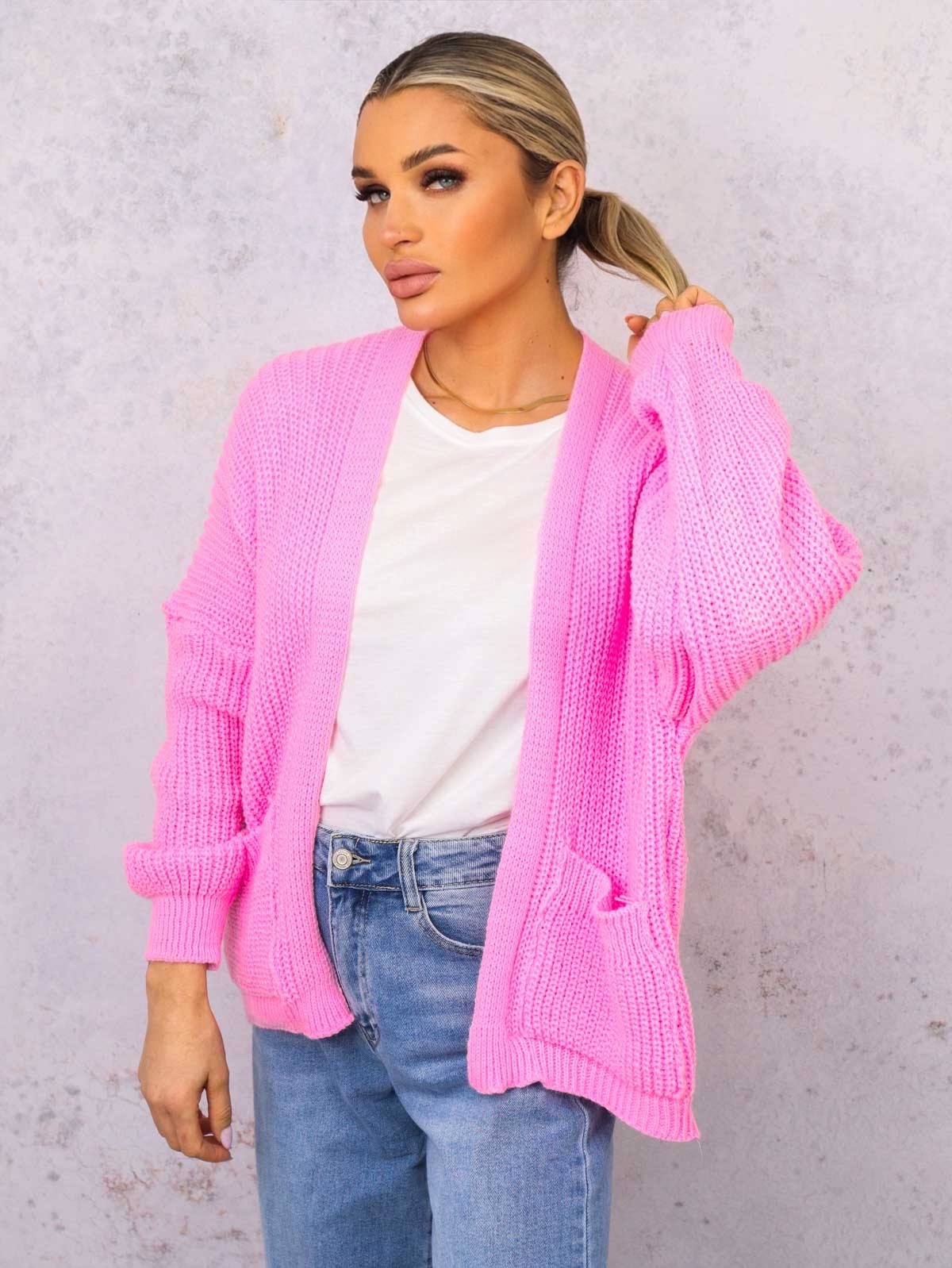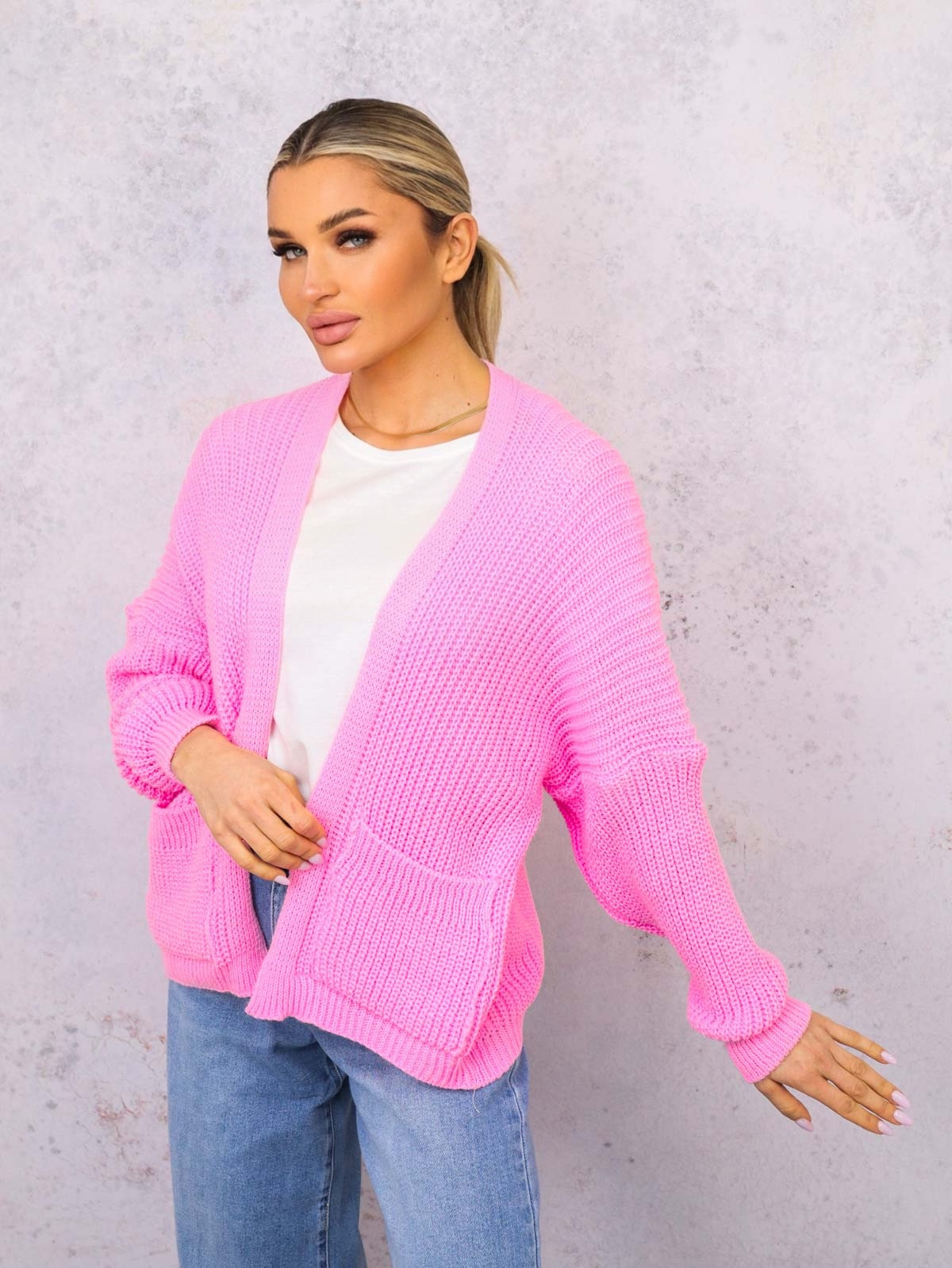 NARZUTA KARDIGAN DZIANINOWY Z KIESZENIAMI- CIEMNORÓŻOWY