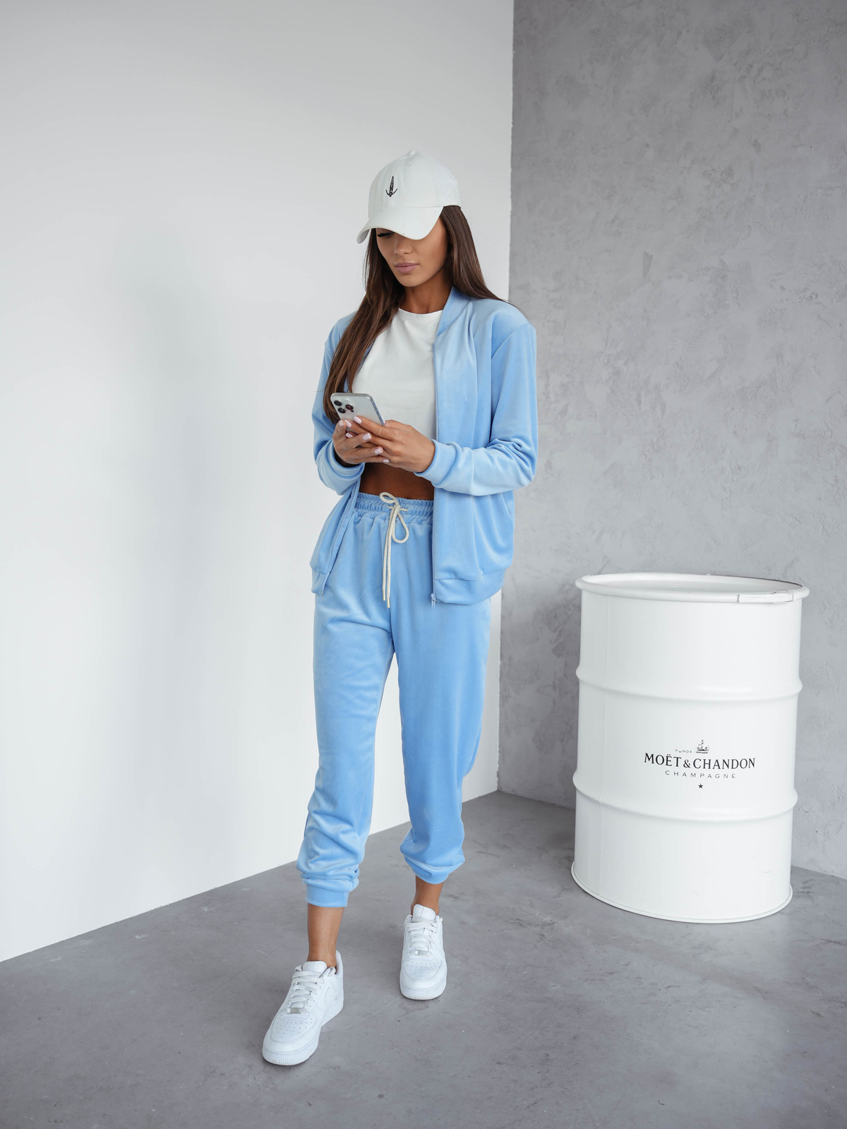 KOMPLET DRESOWY WELUROWY BLUZA ZAPINANA NA ZAMEK+ SPODNIE- NIEBIESKI