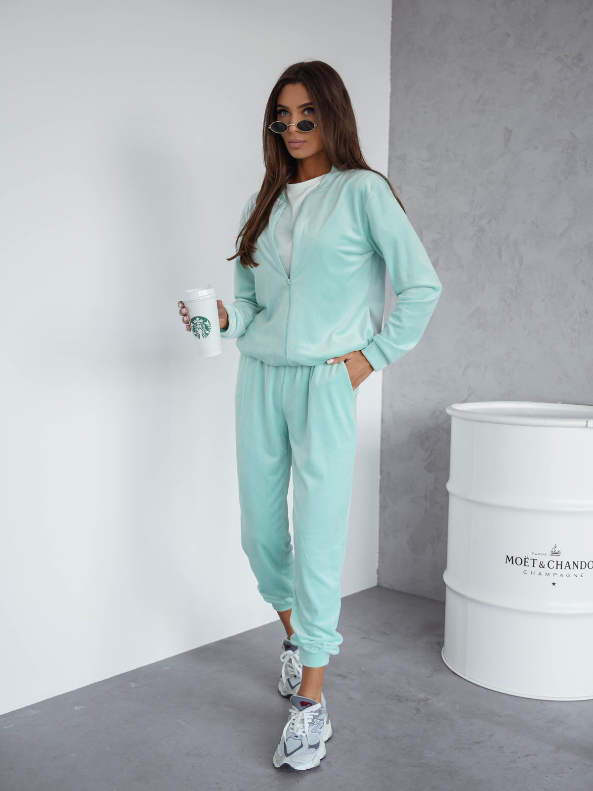 KOMPLET DRESOWY WELUROWY BLUZA ZAPINANA NA ZAMEK+ SPODNIE- MIĘTOWY