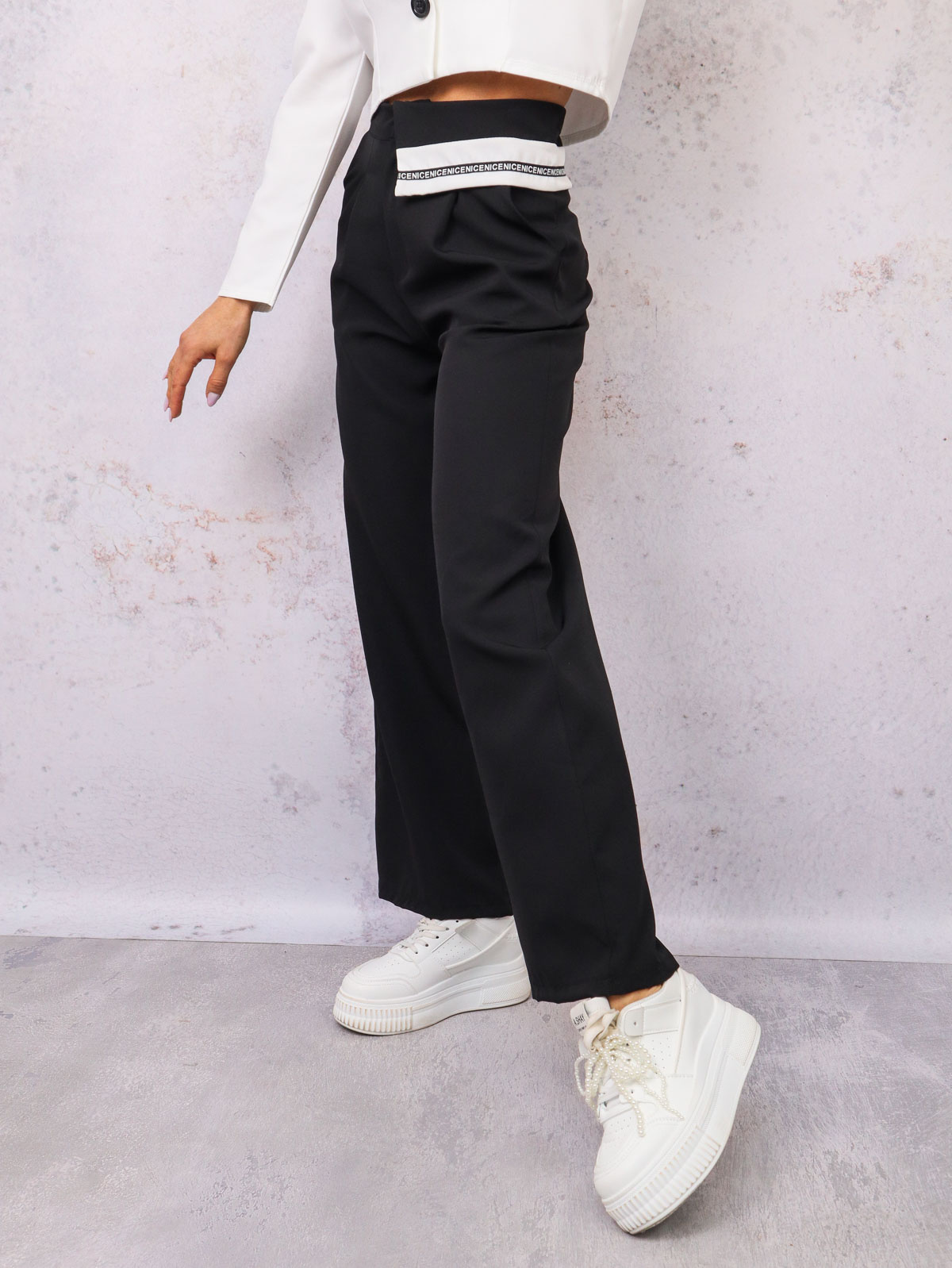 SPODNIE MATERIAŁOWE ELEGANCKIE Z MANKIETEM W PASIE- CZARNE