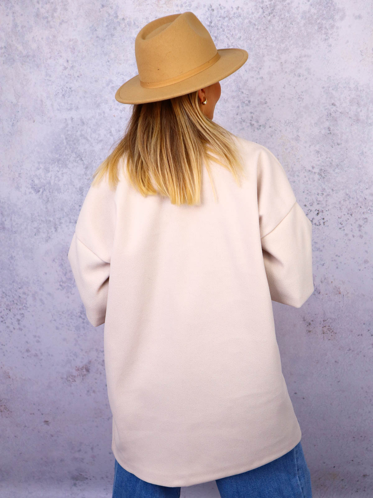 PŁASZCZ ZE SWETROWYMI RĘKAWAMI- BEŻOWY