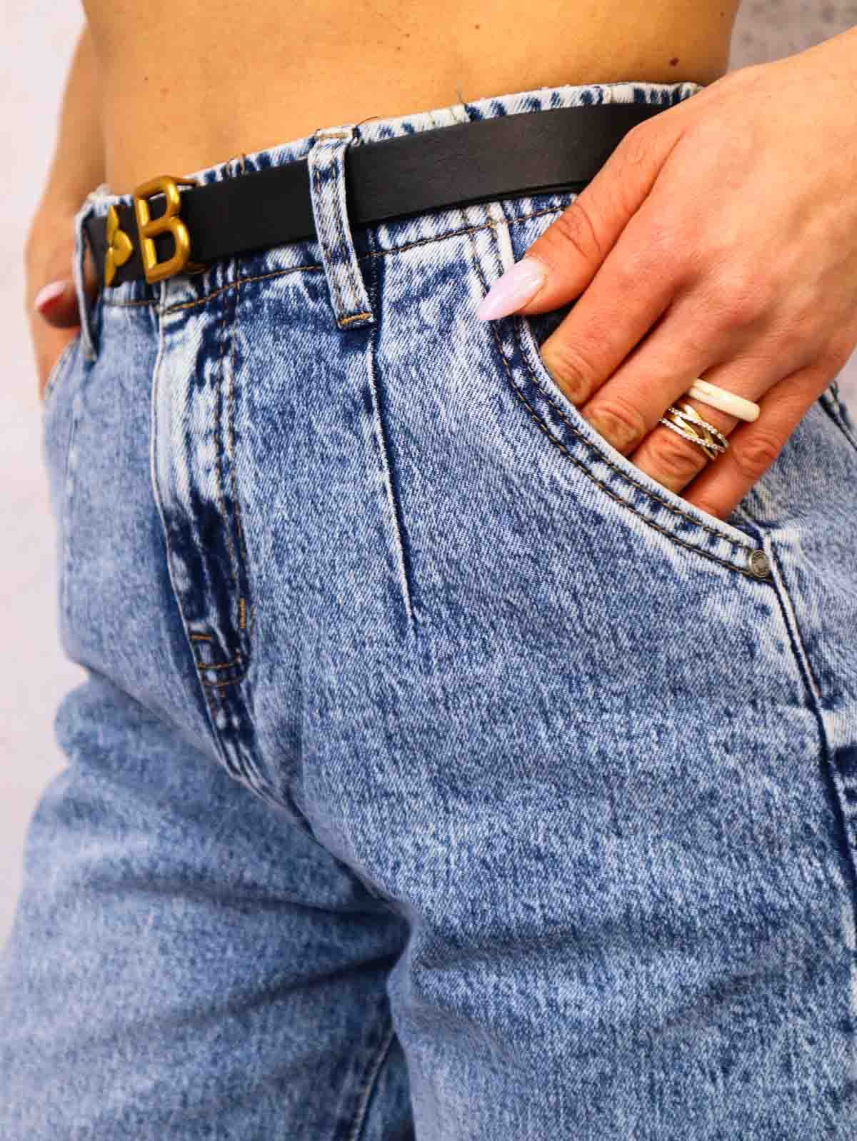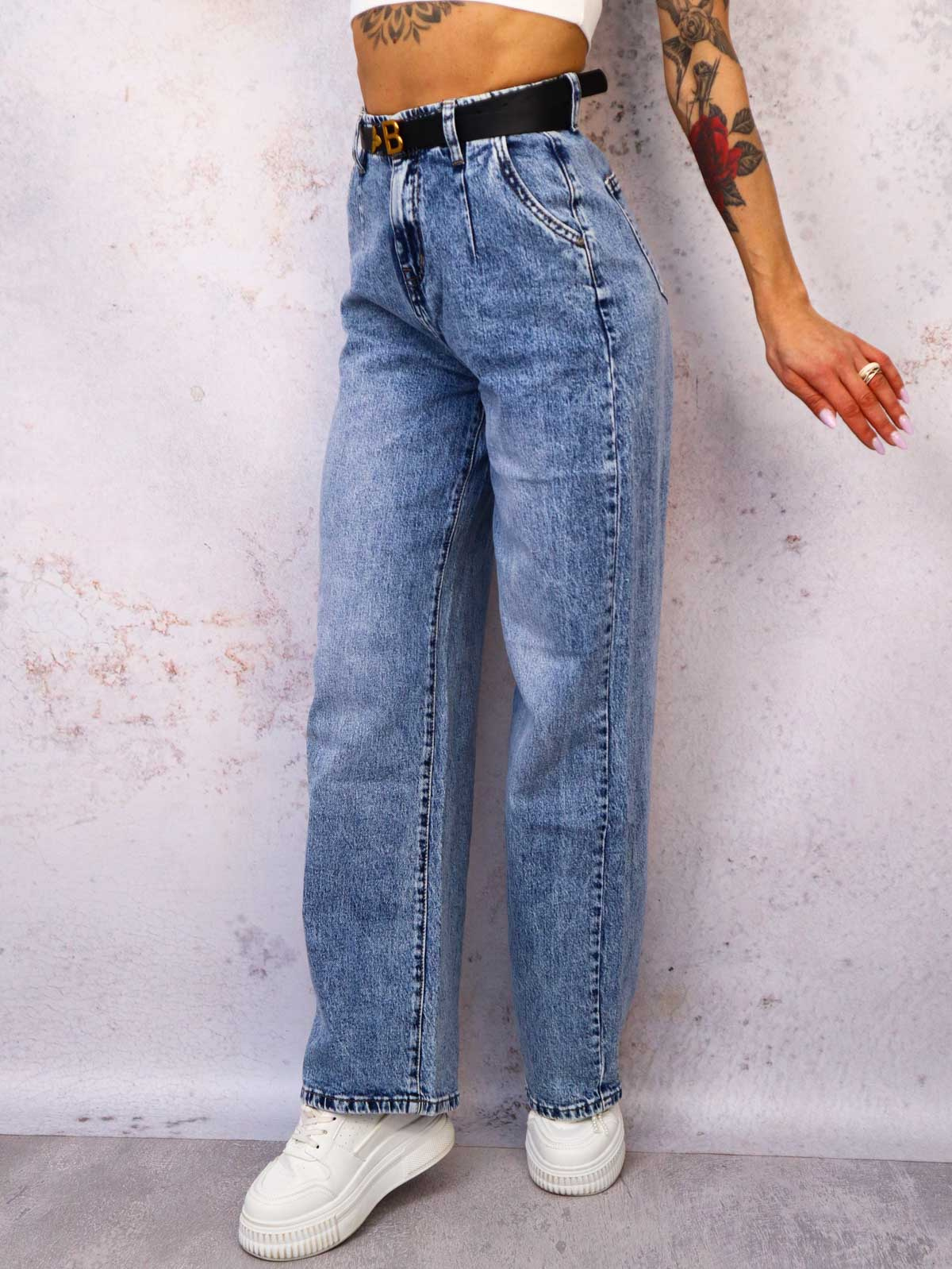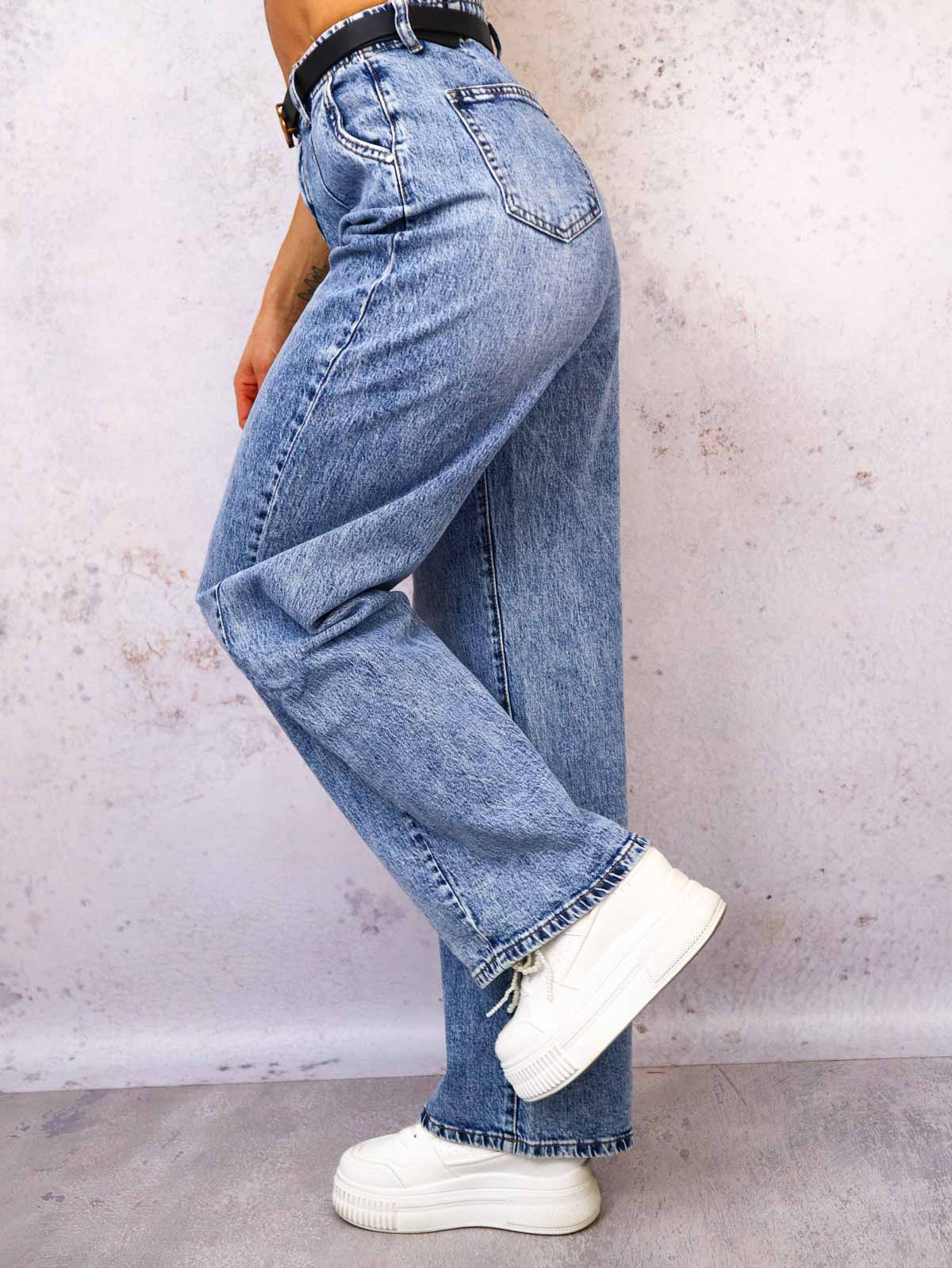 SPODNIE JEANSOWE DEKATYZOWANE Z SZEROKIMI NOGAWKAMI+ PASEK