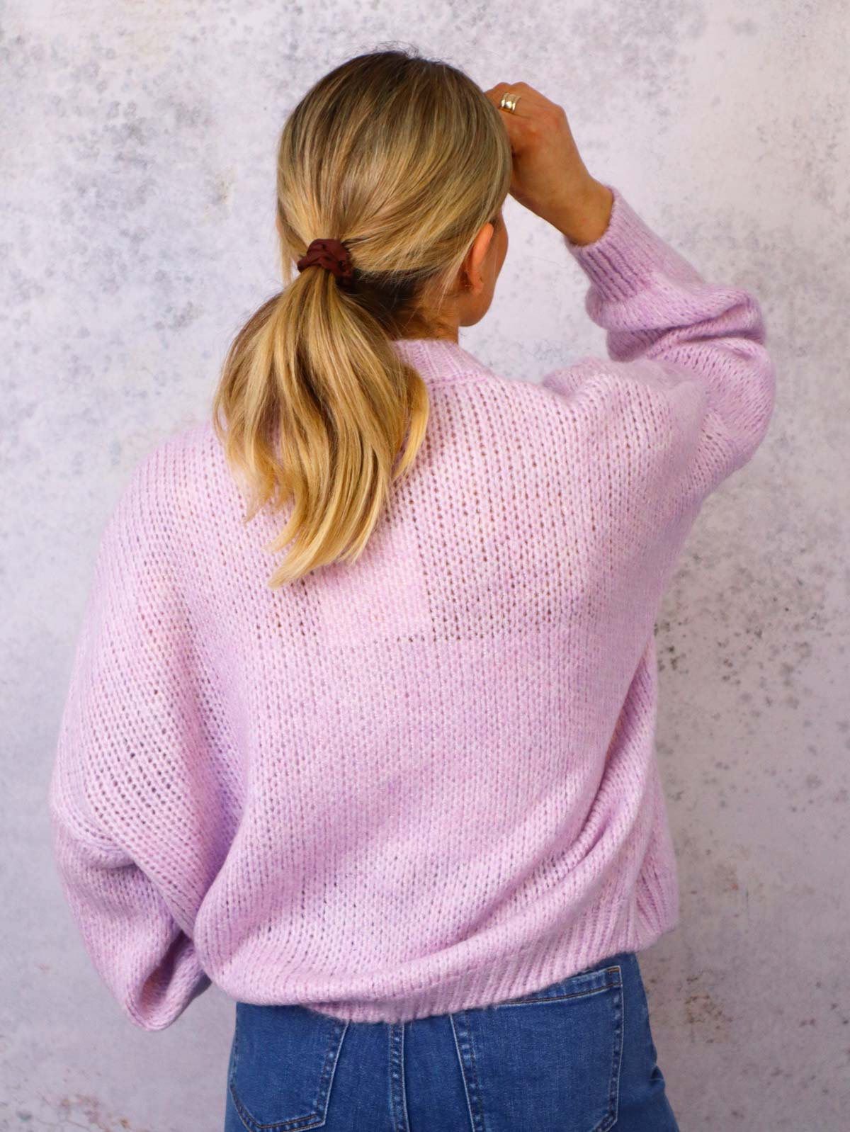 SWETER ZAPINANY NA GUZIKI W SERDUSZKA- FIOLETOWY