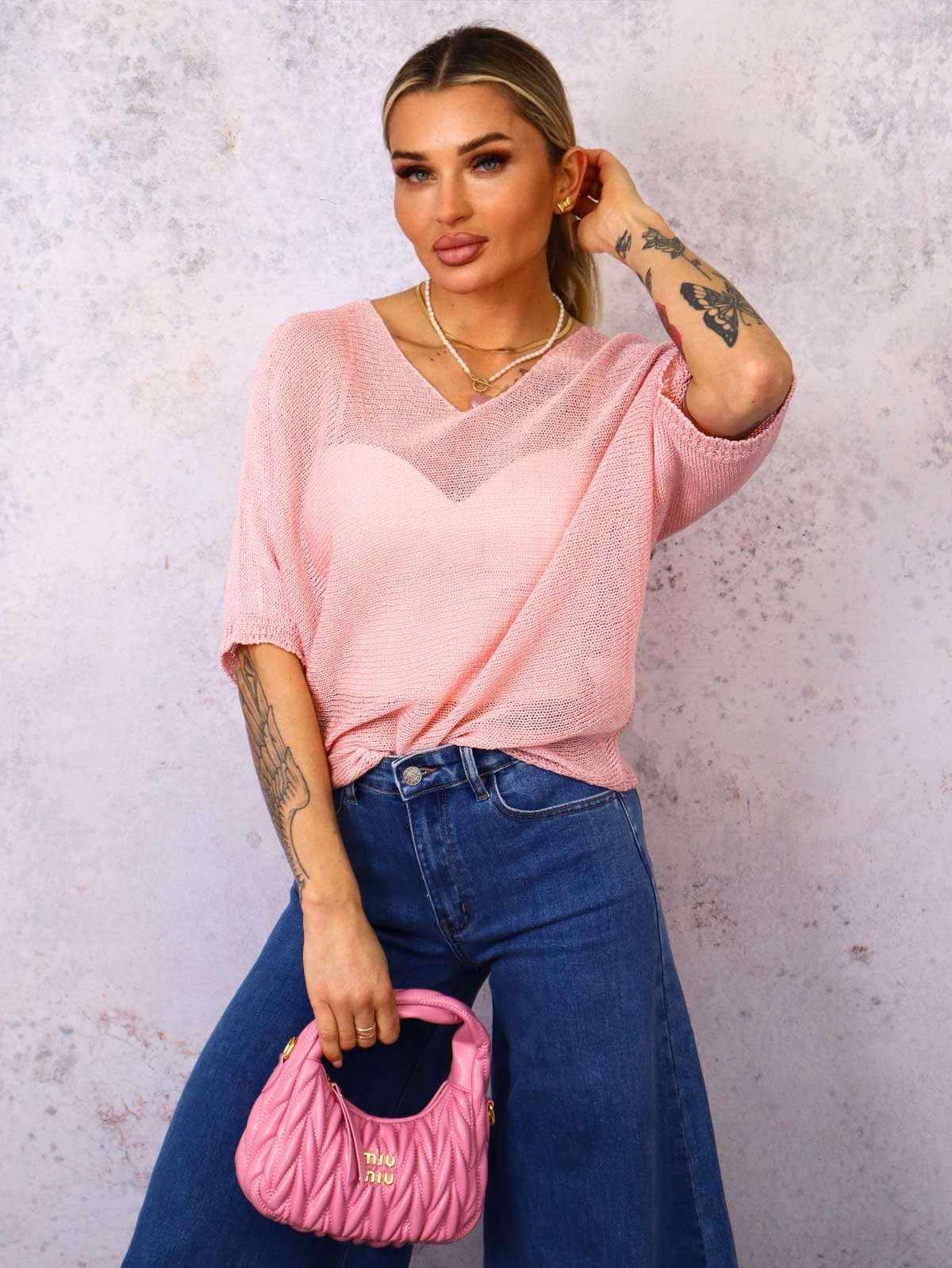 SWETER O KROJU NIETOPERZA Z OZDOBNYMI GUZIKAMI- RÓŻOWY