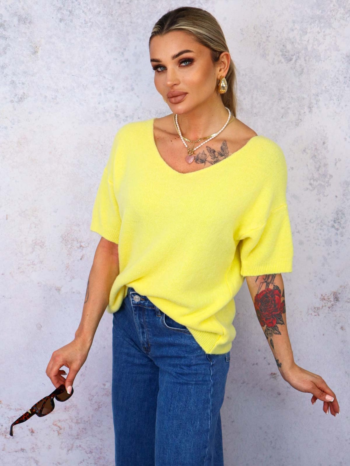 SWETER Z KRÓTKIM RĘKAWEM BABY ALPAKA- ŻÓŁTY