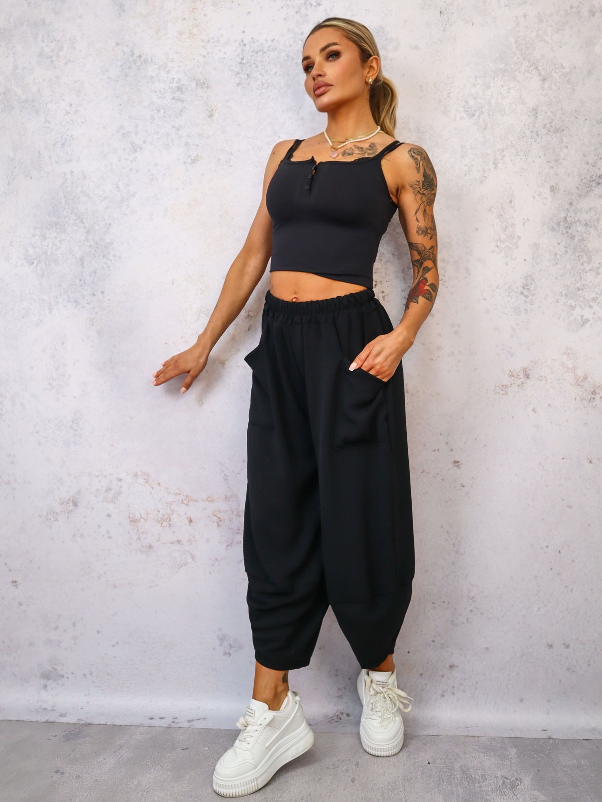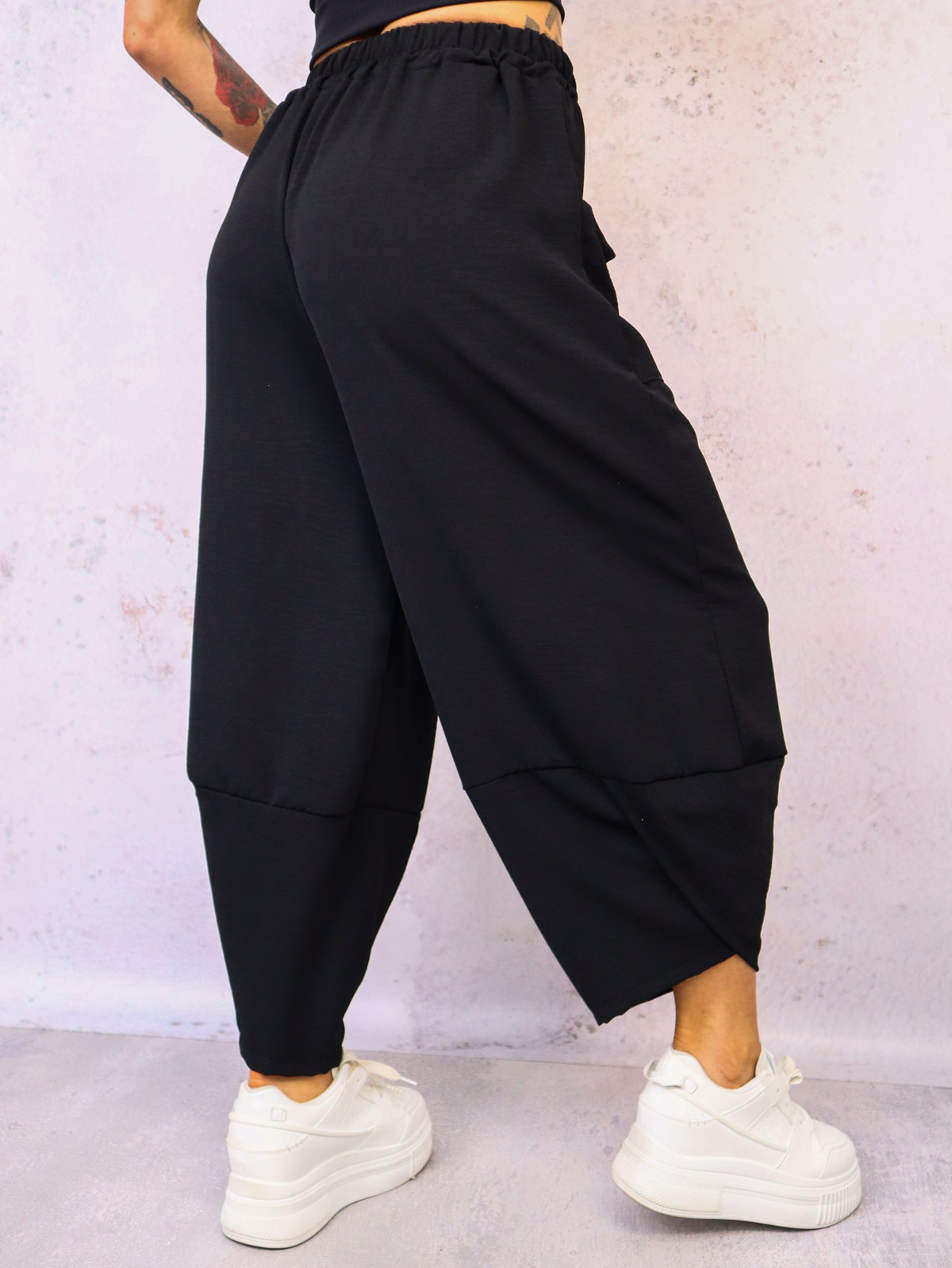 SPODNIE MATERIAŁOWE O LUŹNYM KROJU- CZARNE