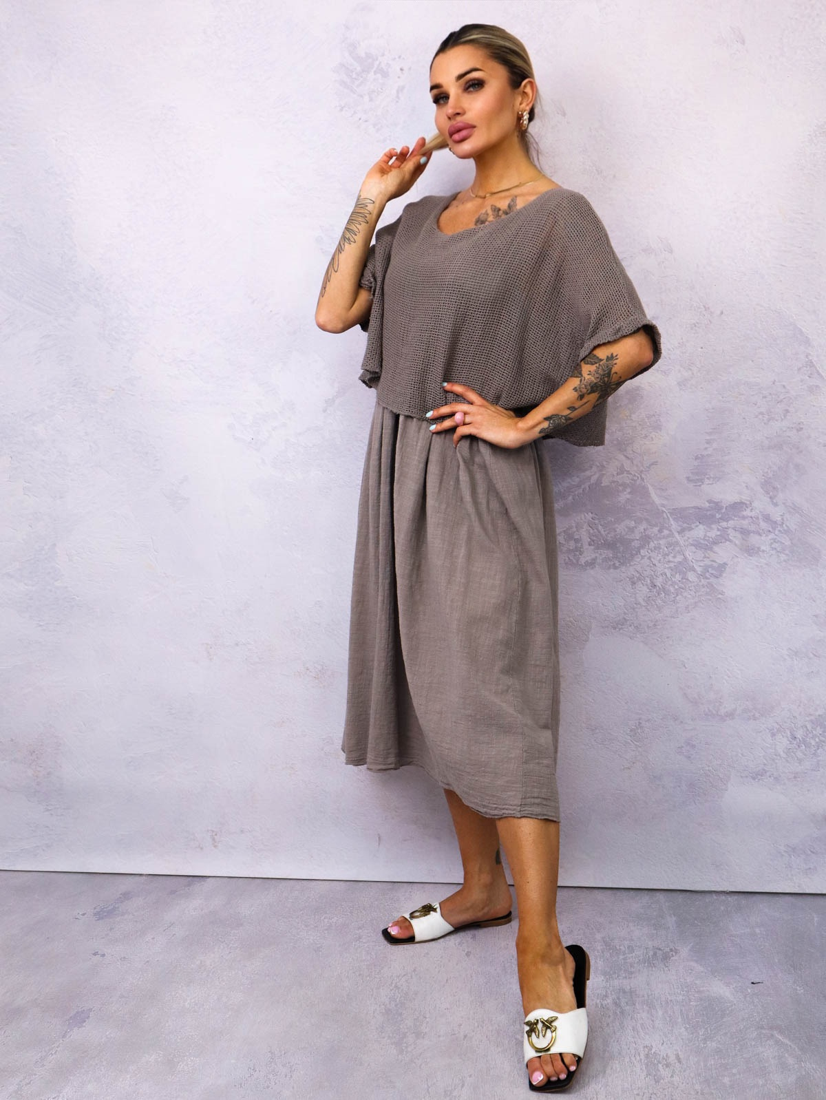 SUKIENKA MIDI Z AŻUROWĄ GÓRĄ- FANGO