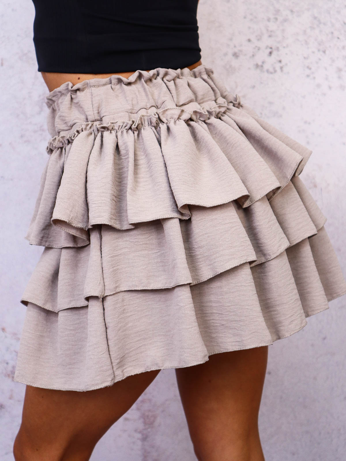 SPÓDNICO-SPODENKI Z FALBANAMI I NASZYWKĄ- SZARE