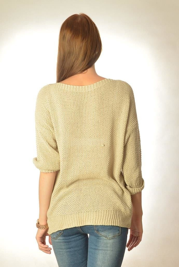 Delikatny i gustowny sweterek z okrągłym dekoltem.