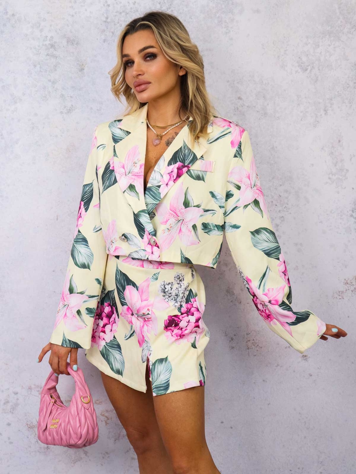 KOMPLET W KWIATY MARYNARKA+ SPÓDNICO-SPODENKI- ŻÓŁTY