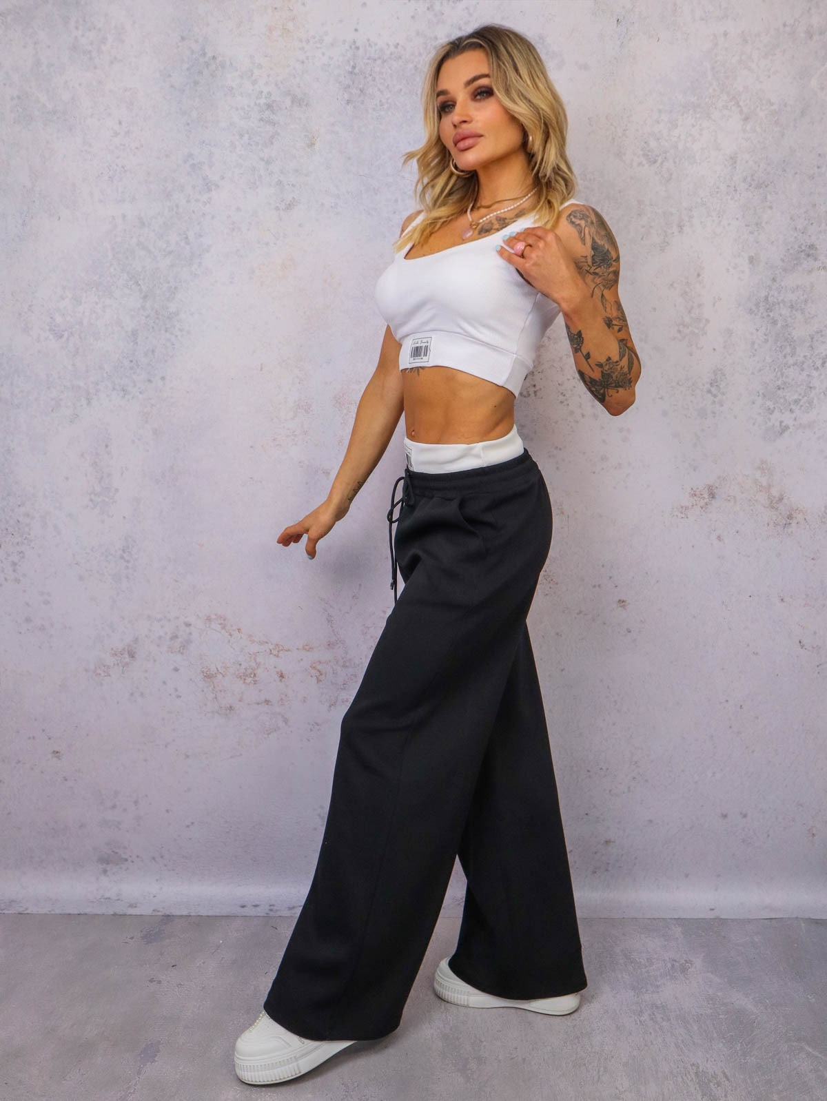 KOMPLET DRESOWY TOP Z NASZYWKĄ+ SPODNIE Z KONTRASTOWYM PASEM- CZARNY