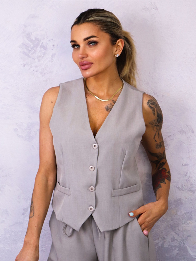 KOMPLET KAMIZELKA+ SPODNIE Z SZEROKIMI NOGAWKAMI- SZARY