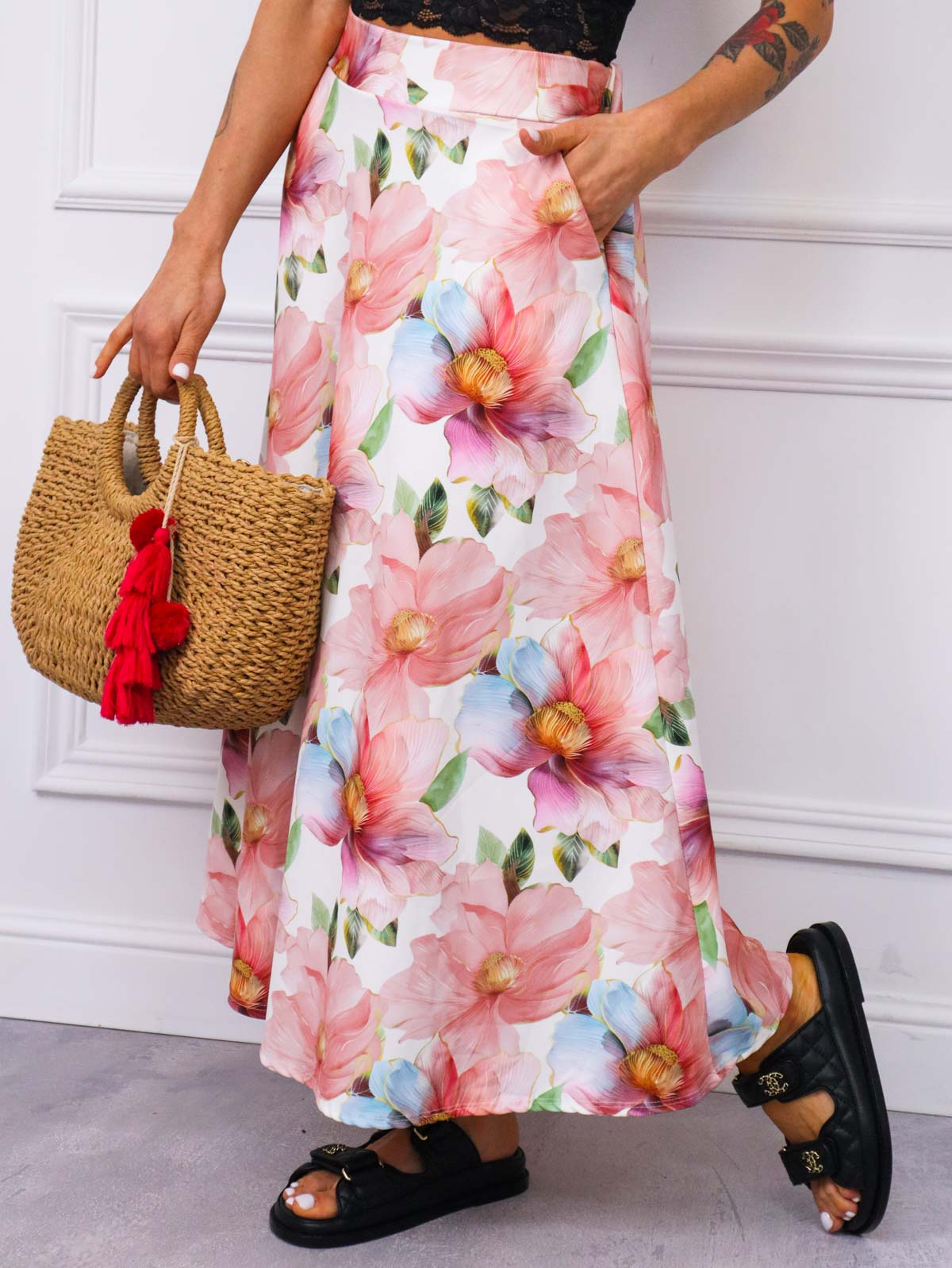 SPÓDNICA MIDI W KWIATY- RÓŻOWA