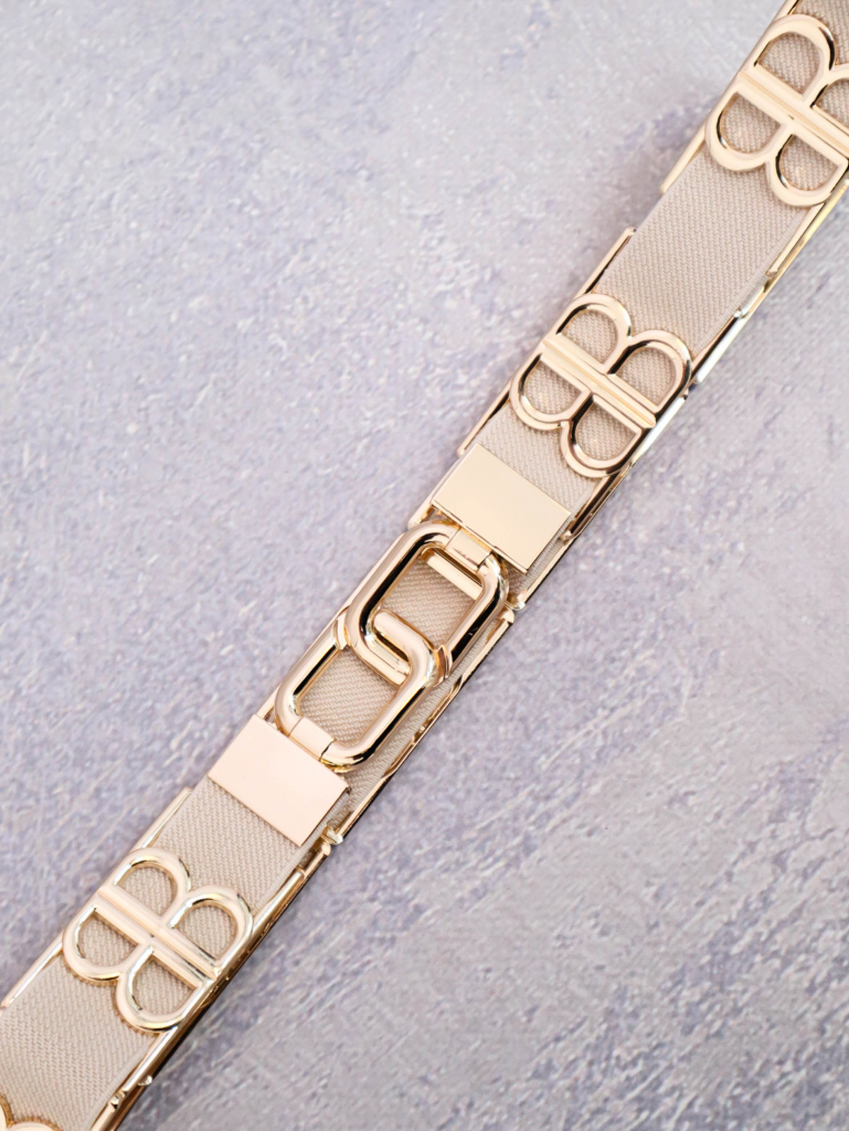 PASEK NA GUMIE ZE ZŁOTYMI ELEMENTAMI BB- BEŻOWY