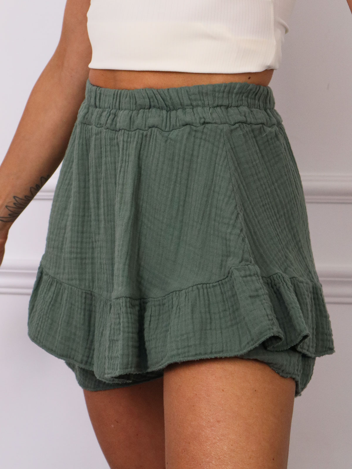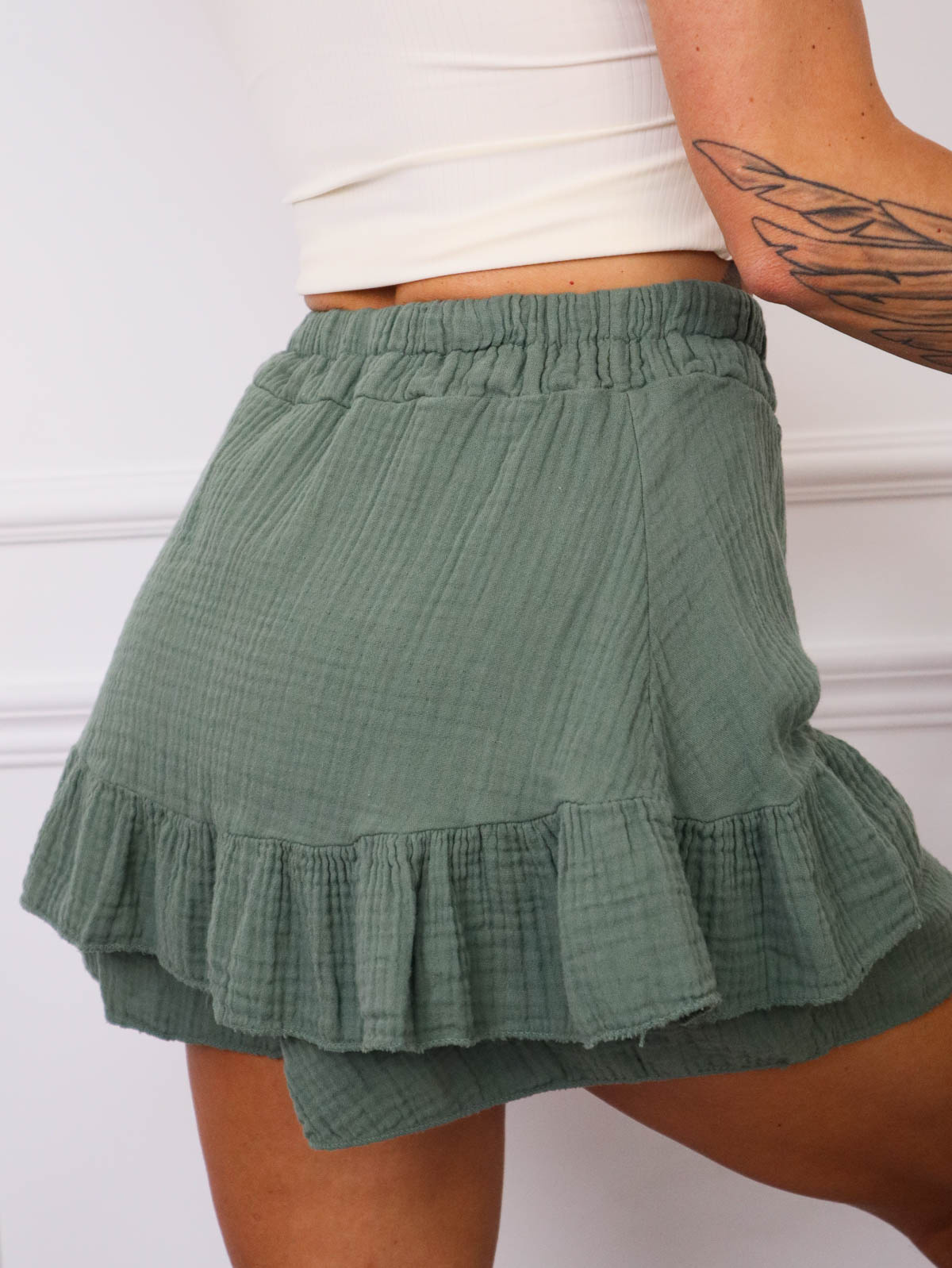 SPÓDNICO-SPODENKI MUŚLINOWE Z FALBANAMI- ZIELONE