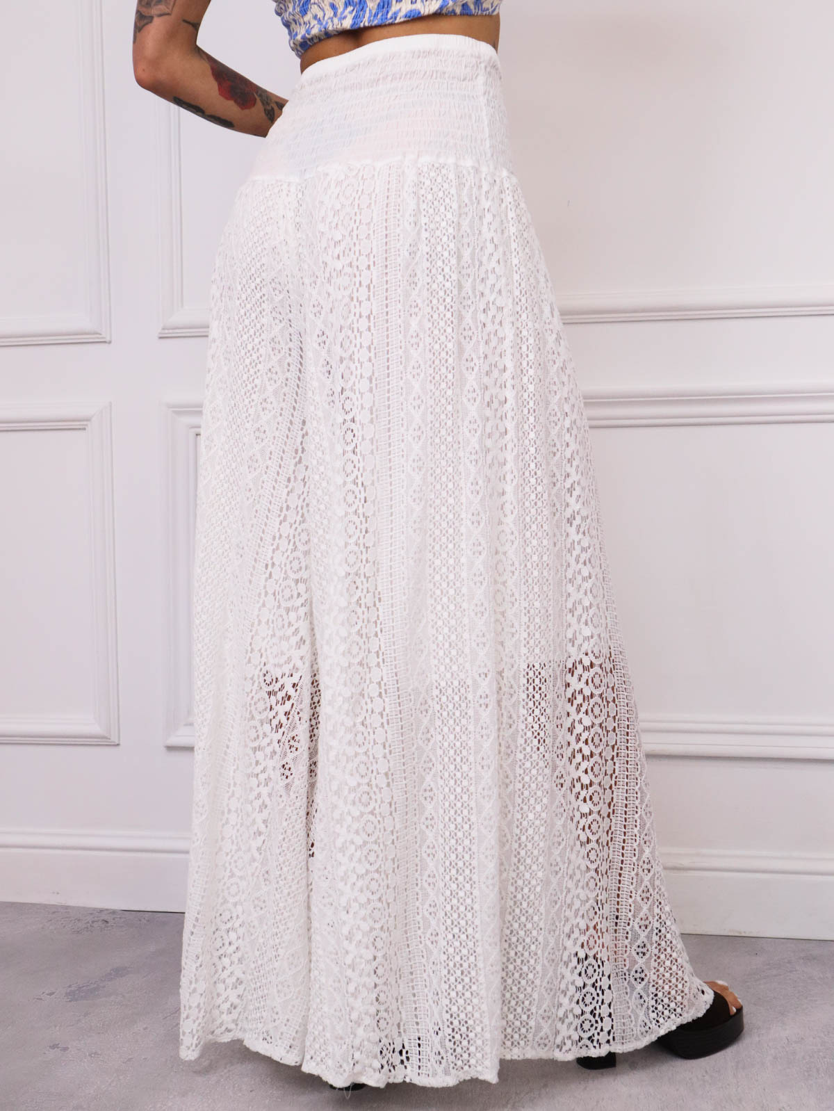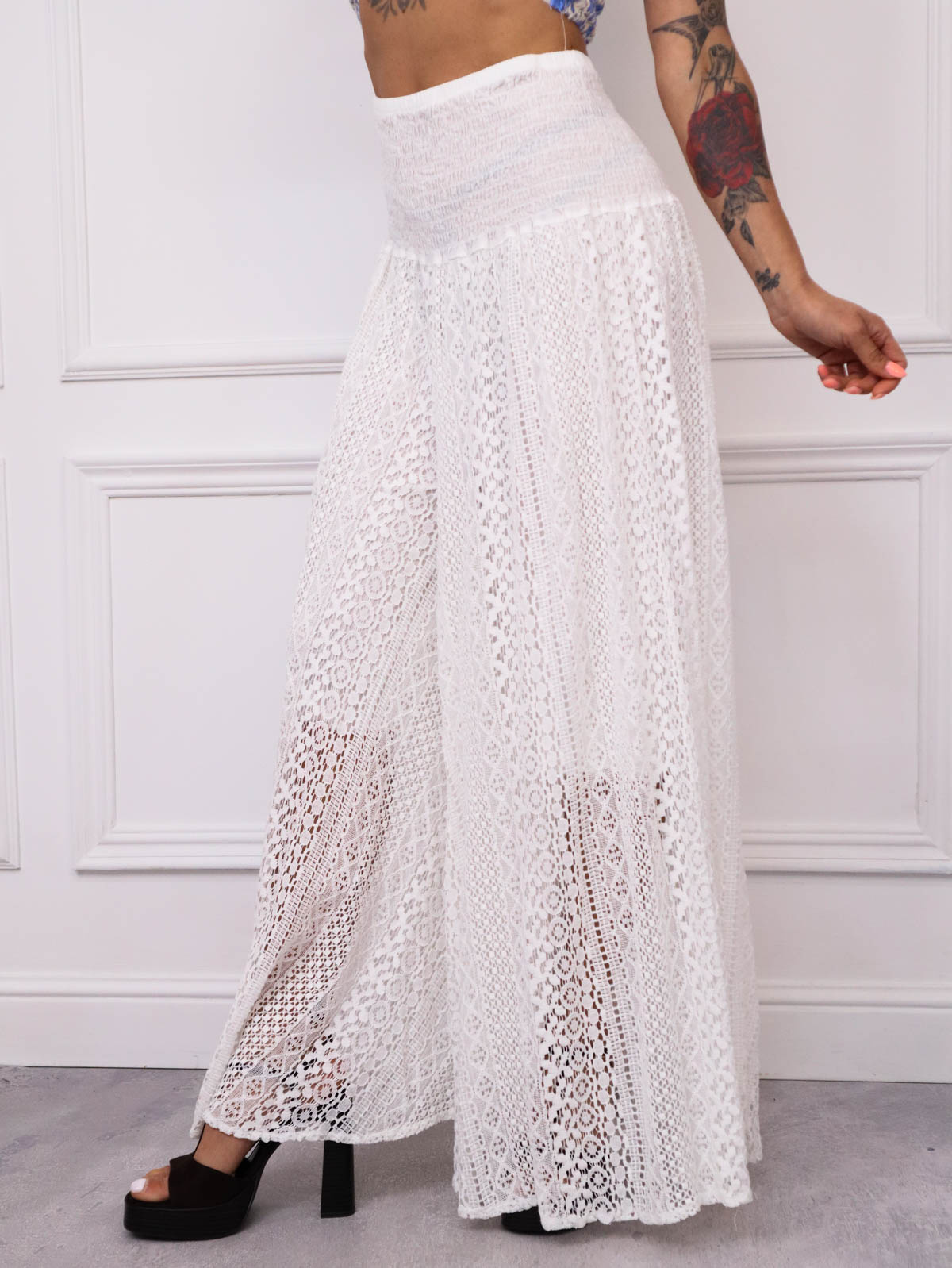 SPODNIE Z KORONKOWYMI NOGAWKAMI I SZEROKIM PASEM- BIAŁE