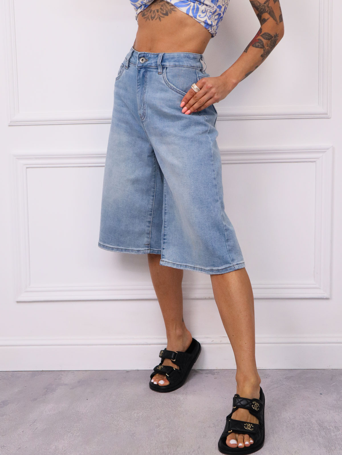 SZORTY JEANSOWE BERMUDY Z WYSOKIM STANEM