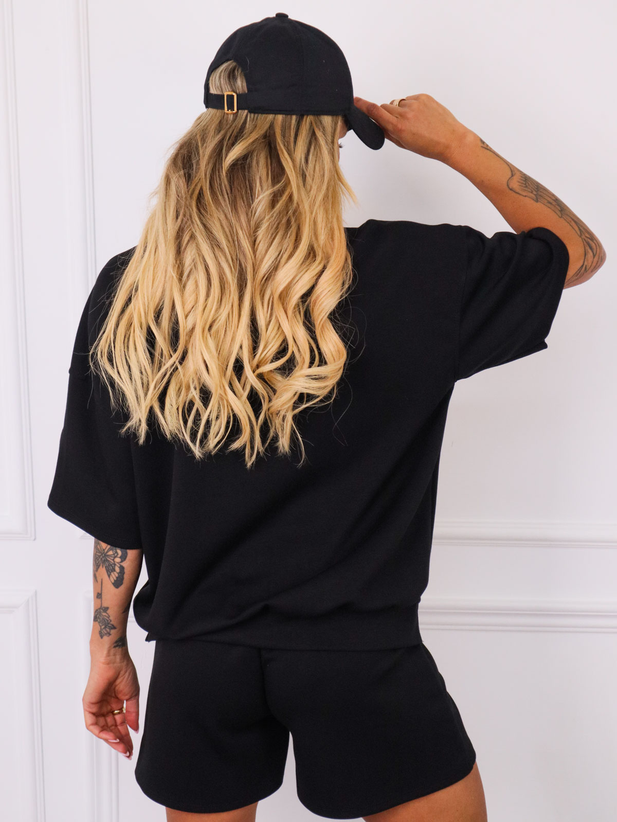 KOMPLET SZORTY+ T-SHIRT Z NASZYWKĄ- CZARNY
