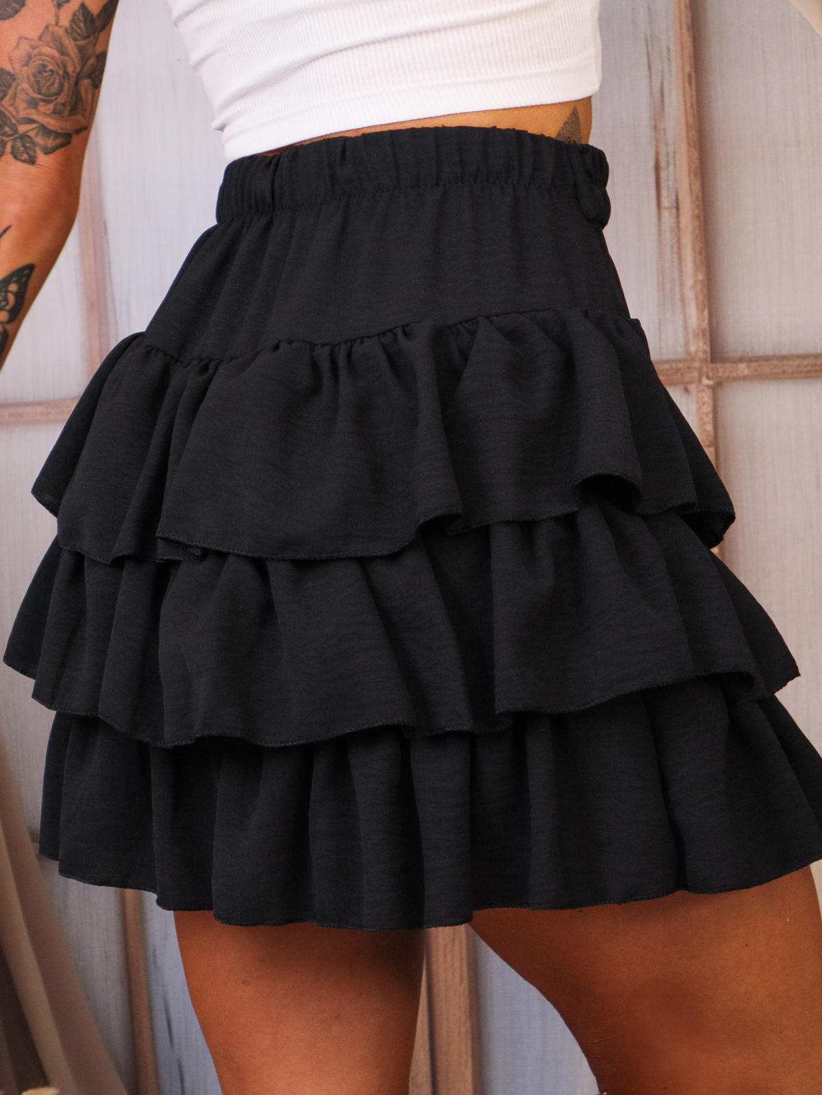 SPÓDNICO-SPODENKI Z FALBANAMI I PASKIEM- CZARNE