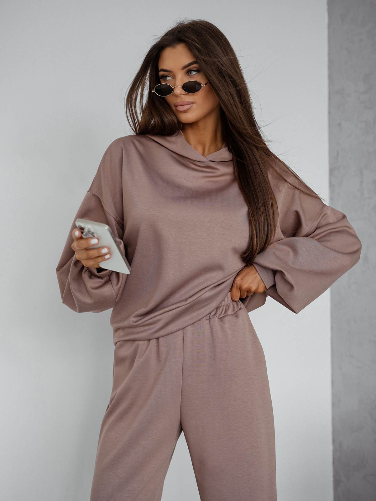 KOMPLET DRESOWY BLUZA Z KAPTUREM+ SPODNIE- CAPPUCCINO