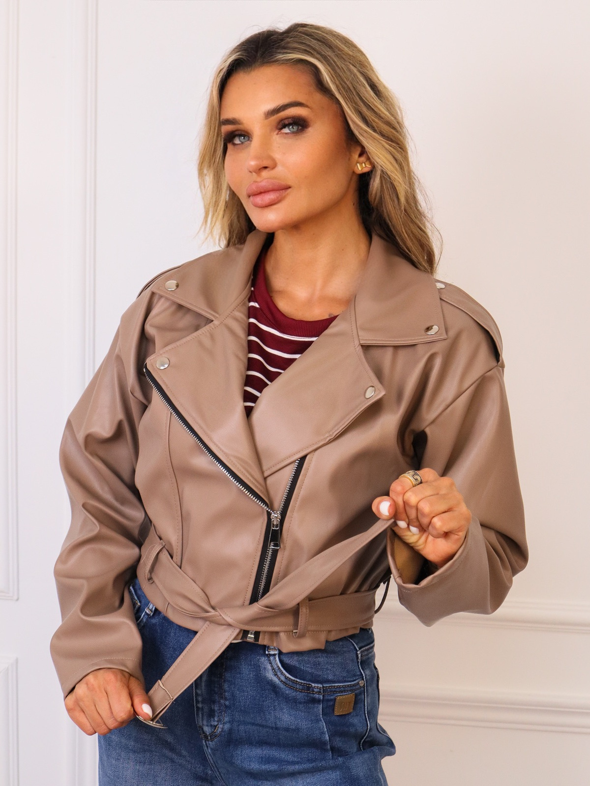 KURTKA RAMONESKA Z PASKIEM- BRĄZOWA