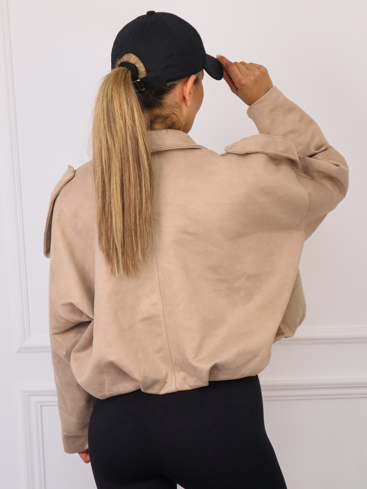 KURTKA OVERSIZE Z IMITACJI ZAMSZU ZAPINANA NA ZAMEK- BEŻOWA