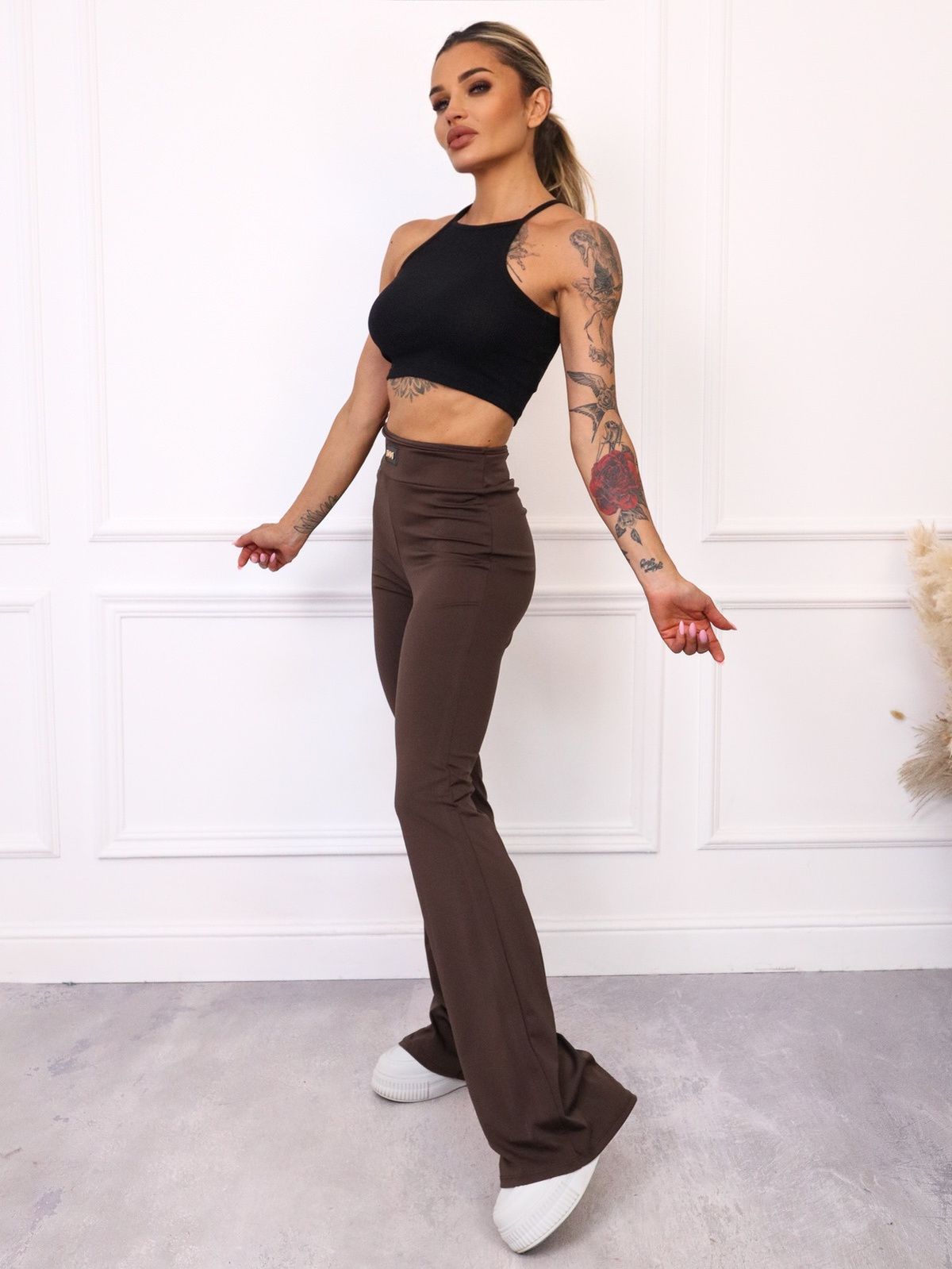 LEGGINSY FLARE Z ROZSZERZANYMI NOGAWKAMI I NASZYWKĄ- BRĄZOWE