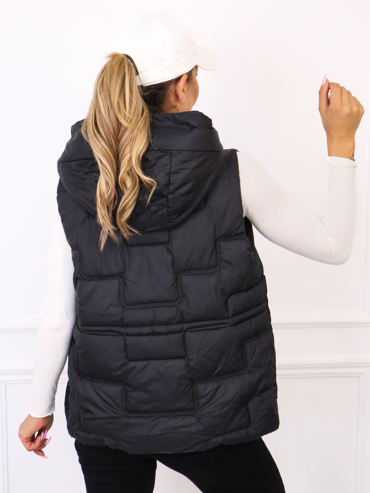 KAMIZELKA PIKOWANA ZE ŚCIĄGACZEM W PASIE- CZARNA