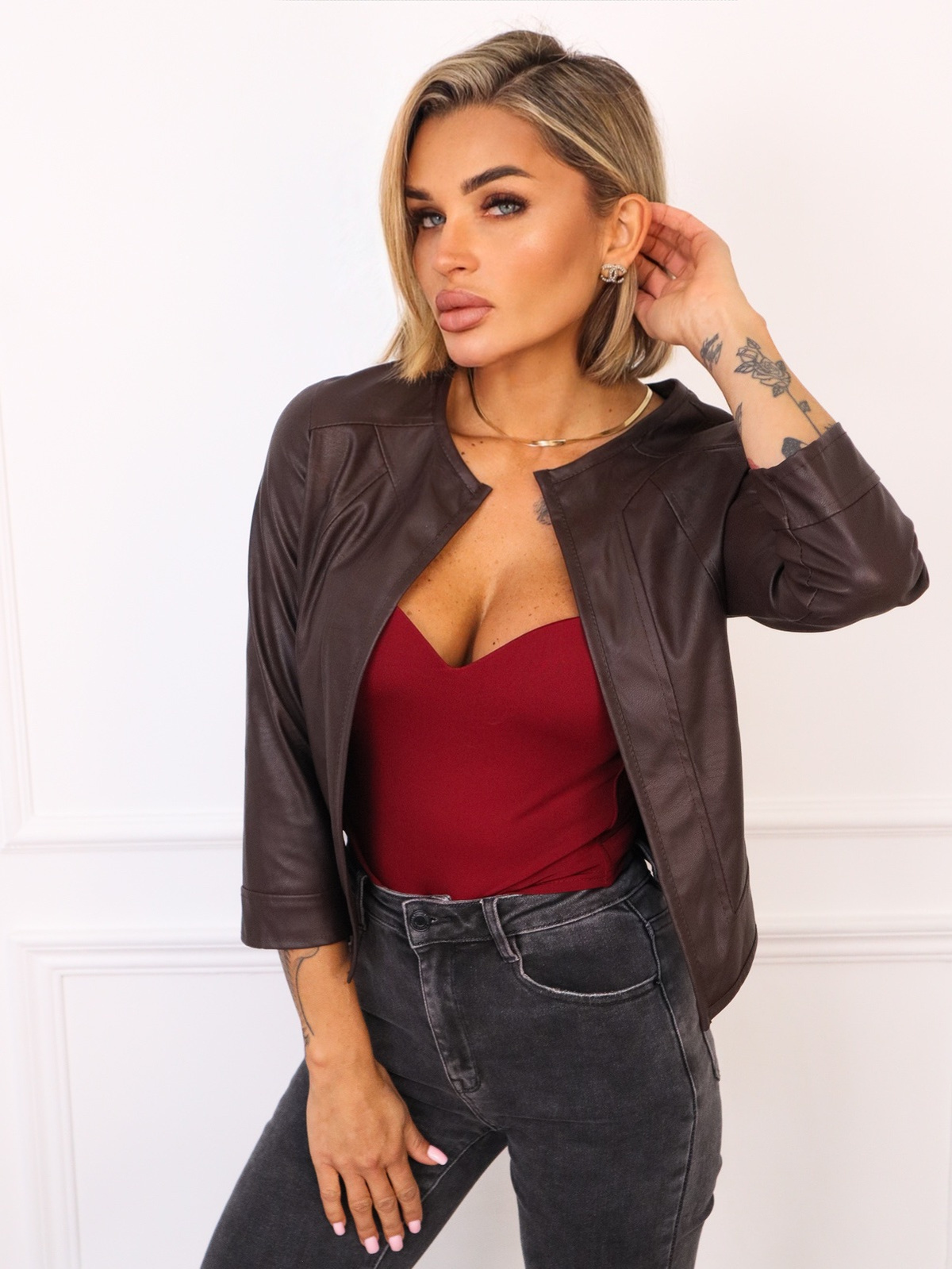 ŻAKIET Z IMITACJI SKÓRY- CZEKOLADOWY