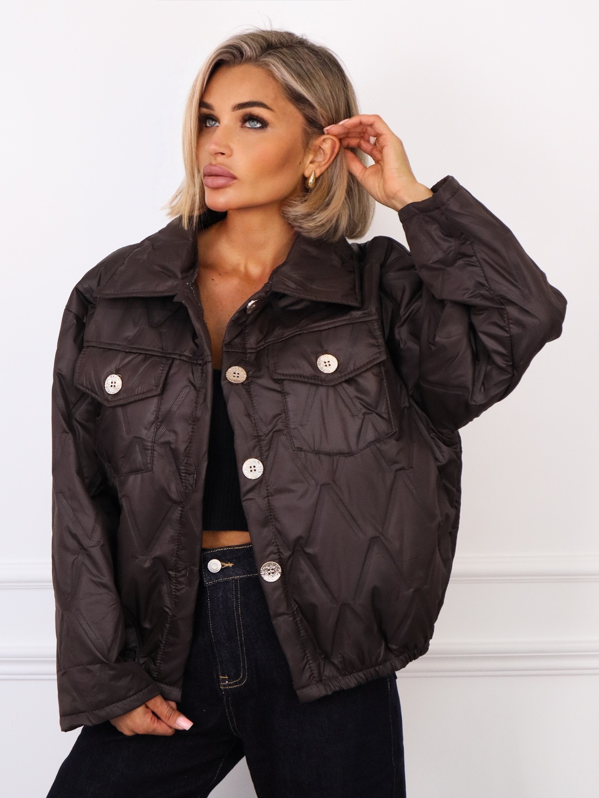 KURTKA PIKOWANA ZAPINANA NA ZŁOTE GUZIKI- CZEKOLADOWA