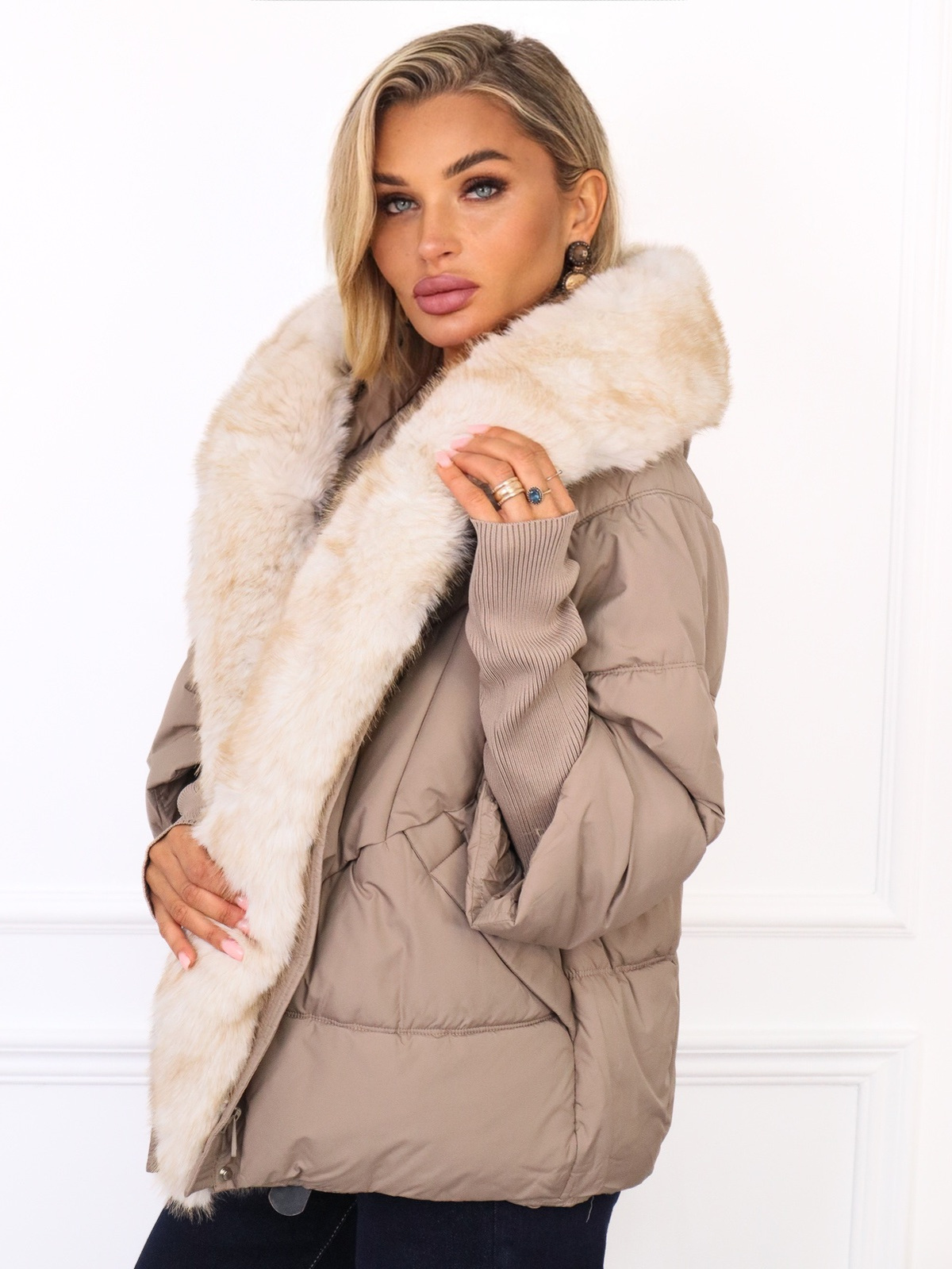 KURTKA PUCHOWA Z DZIANINOWYMI WSTAWKAMI PRZY RĘKAWIE- FANGO