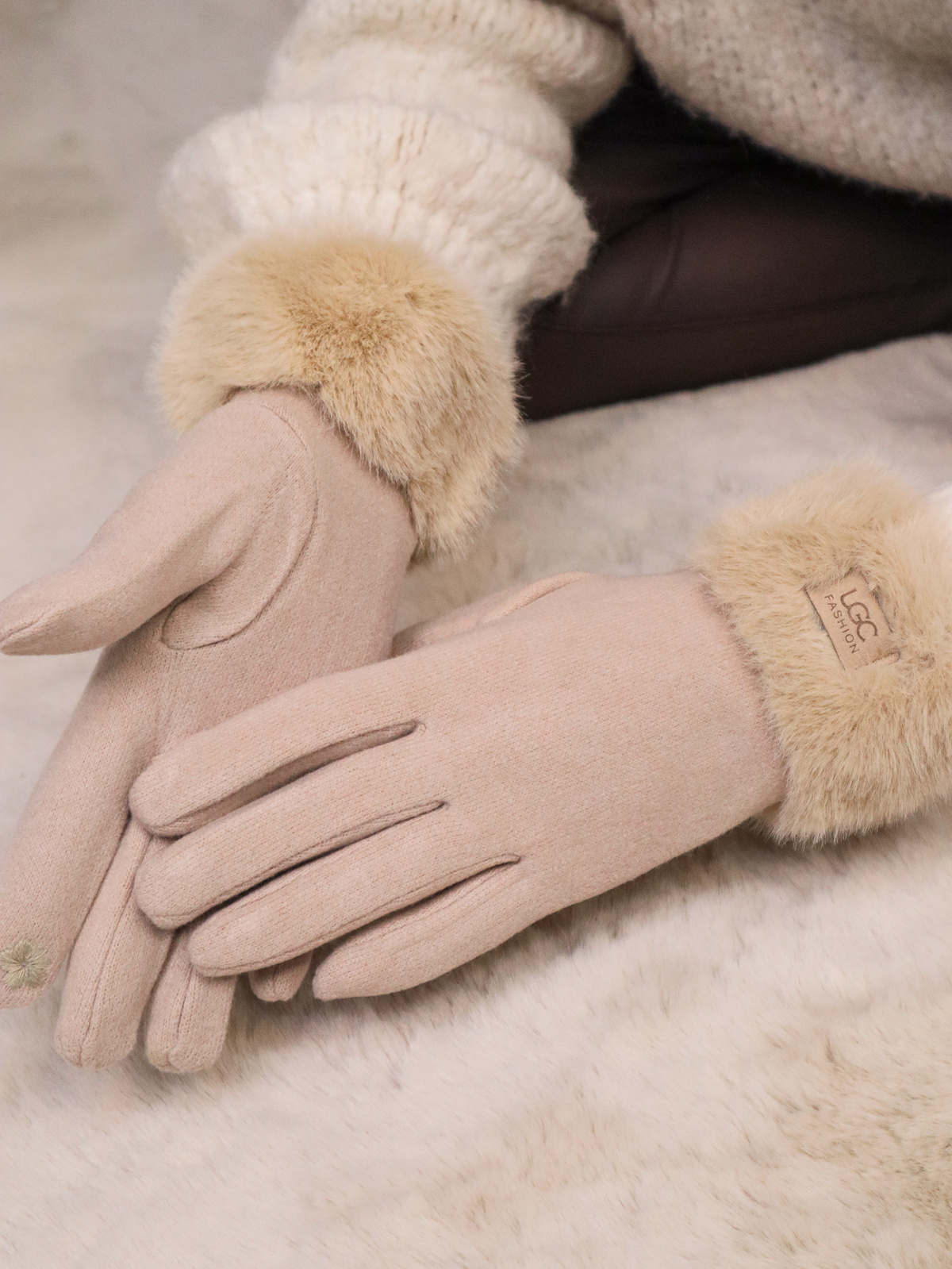 RĘKAWICZKI DZIANINOWE Z FUTERKIEM I NASZYWKĄ- BEŻOWY