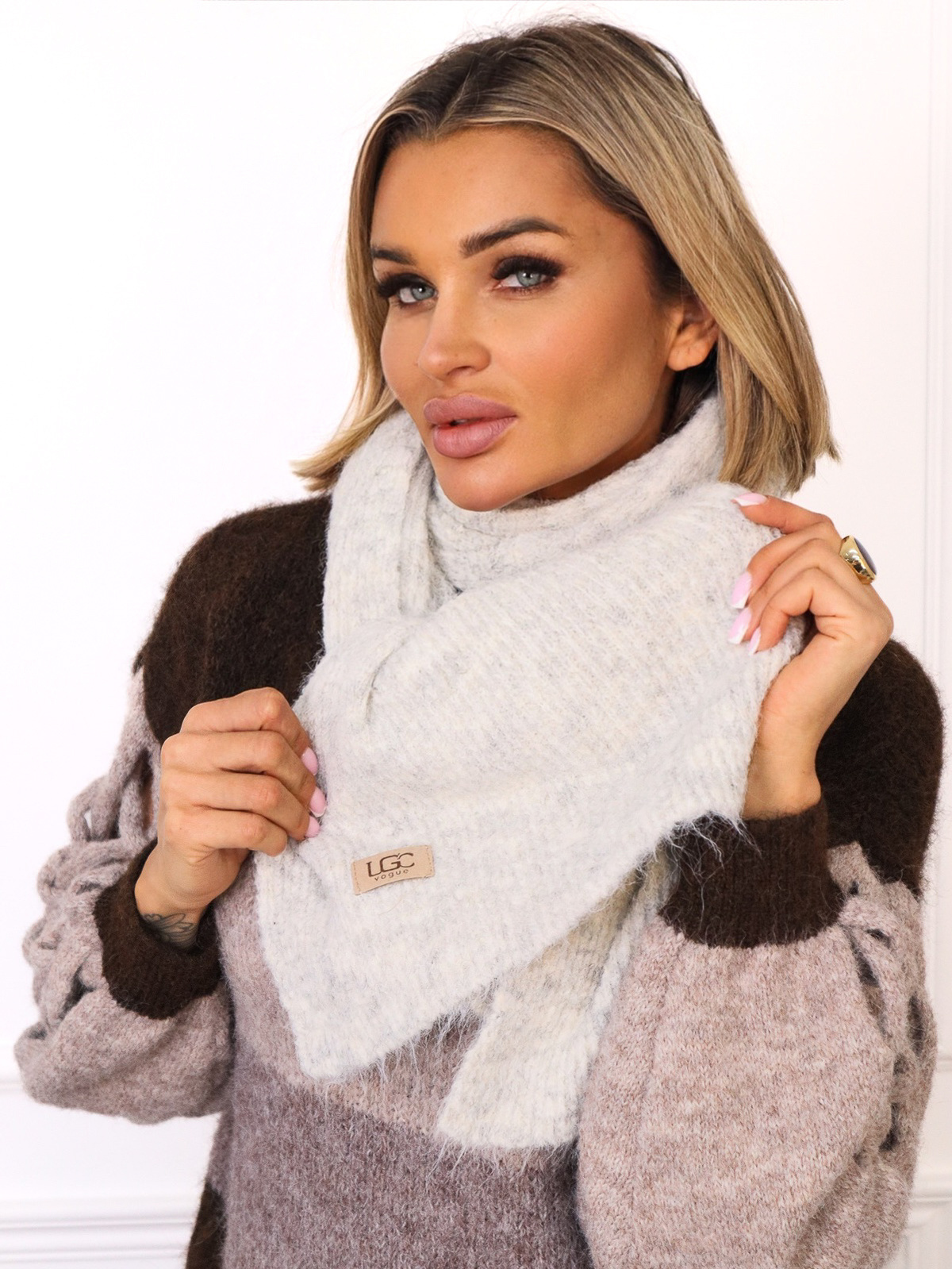 KLASYCZNY SZAL DZIANINOWY Z DOMIESZKĄ WEŁNY ORAZ LOGO- SZARY