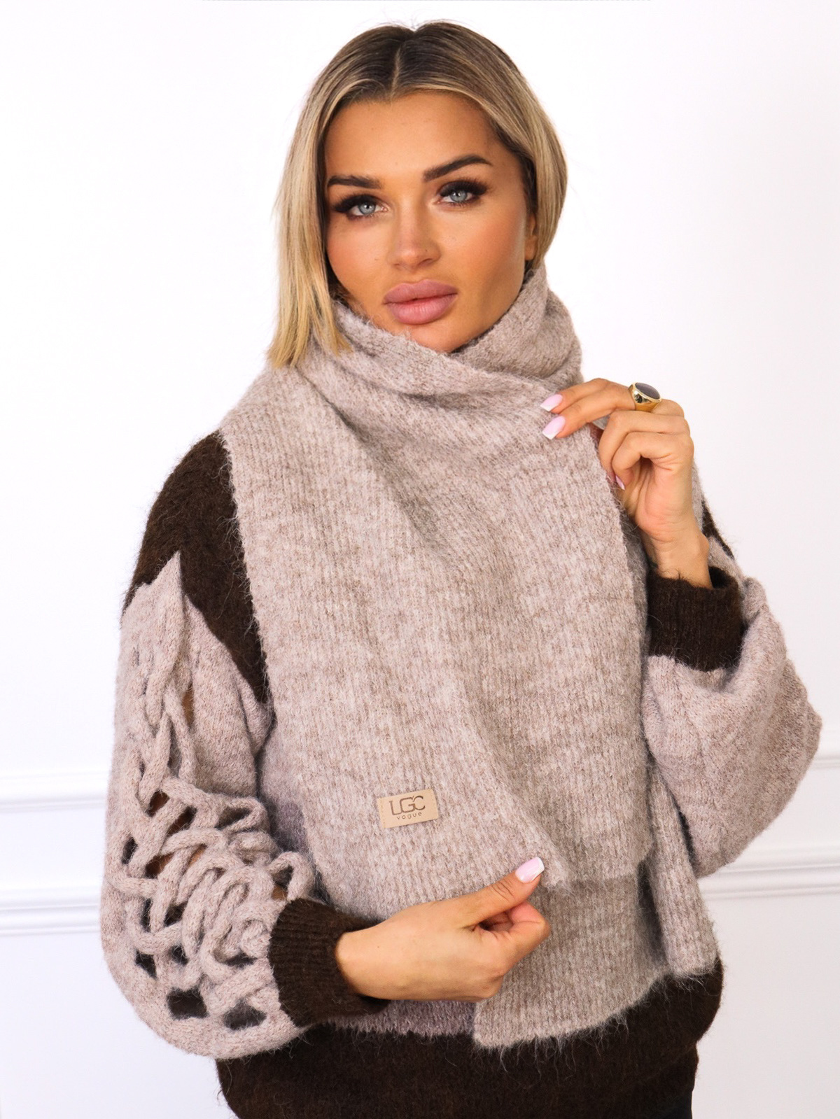 SZAL DZIANINOWY Z DOMIESZKĄ WEŁNY ORAZ LOGO- FANGO