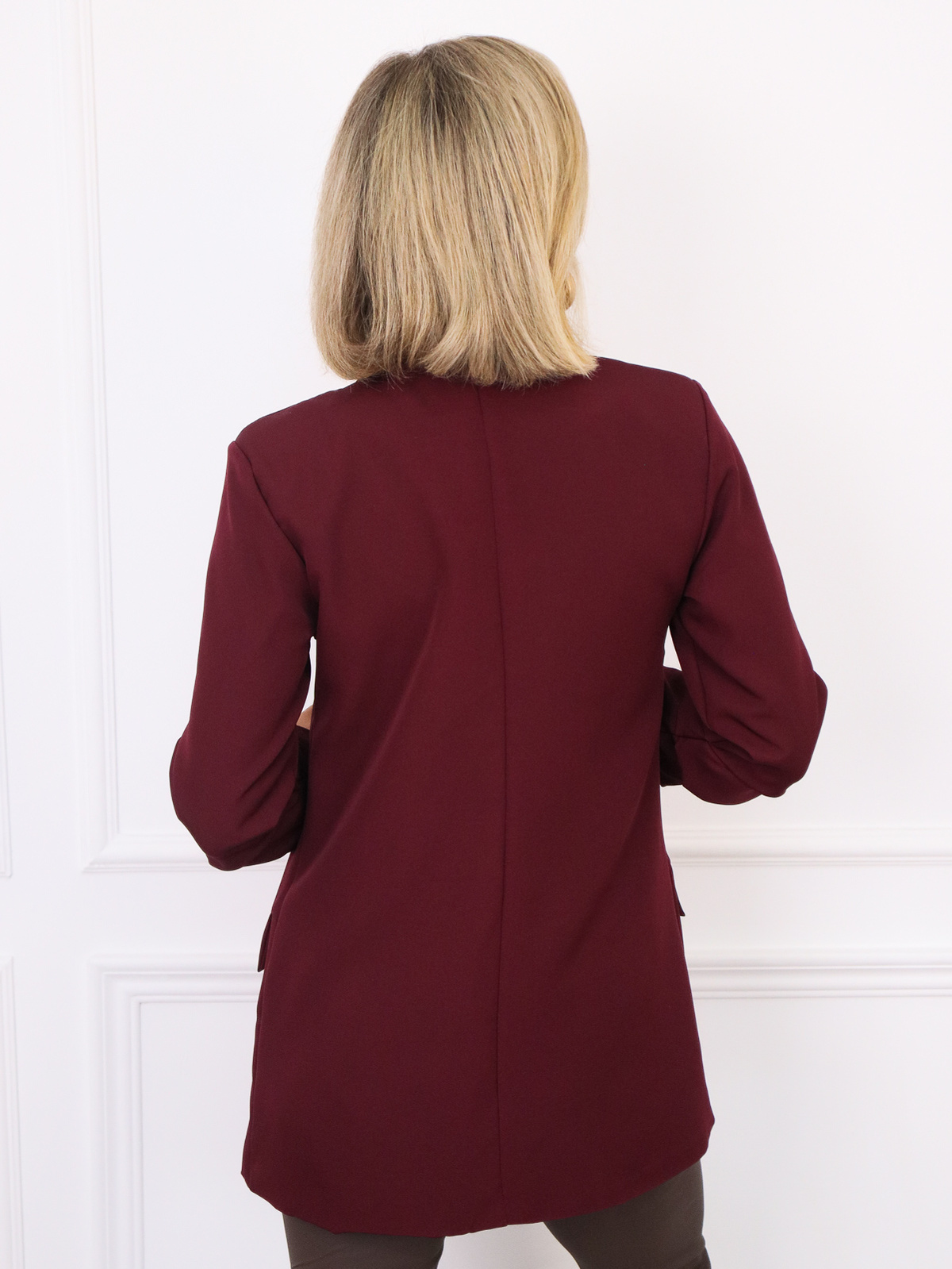 MARYNARKA BEZ ZAPIECIA Z MARSZCZONYMI RĘKAWAMI- BORDOWA