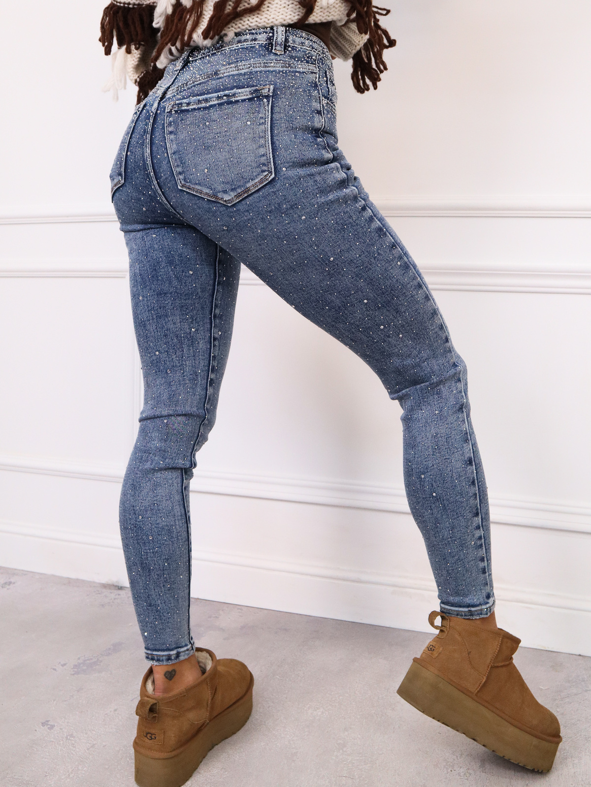 SPODNIE JEANSOWE SKINNY W CYRKONIE- JEANS
